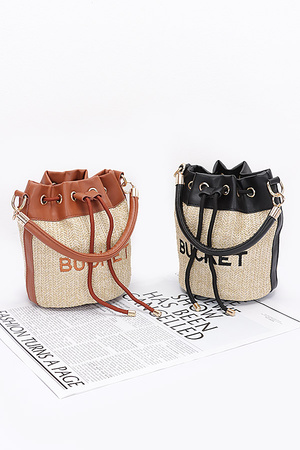 Faux Straw Bucket Bag