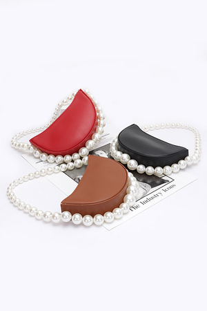 Faux Pearl Handle Half Moon Bag