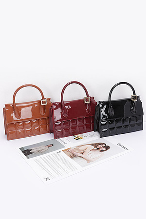Embossed Enamel Top Handle Bag