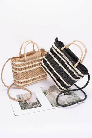 Faux Straw Two Tone Tote Bag