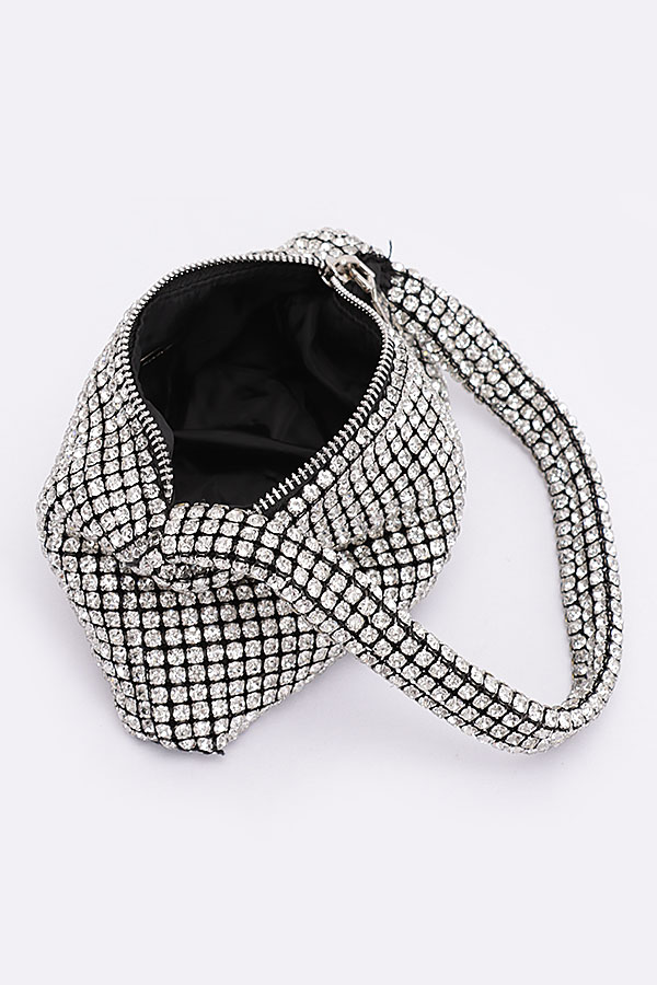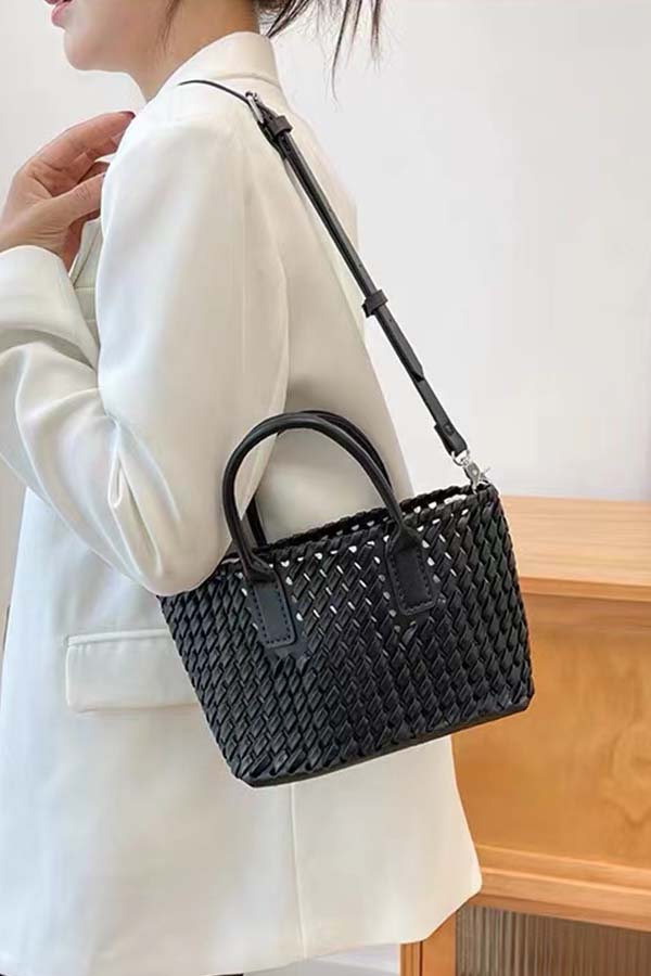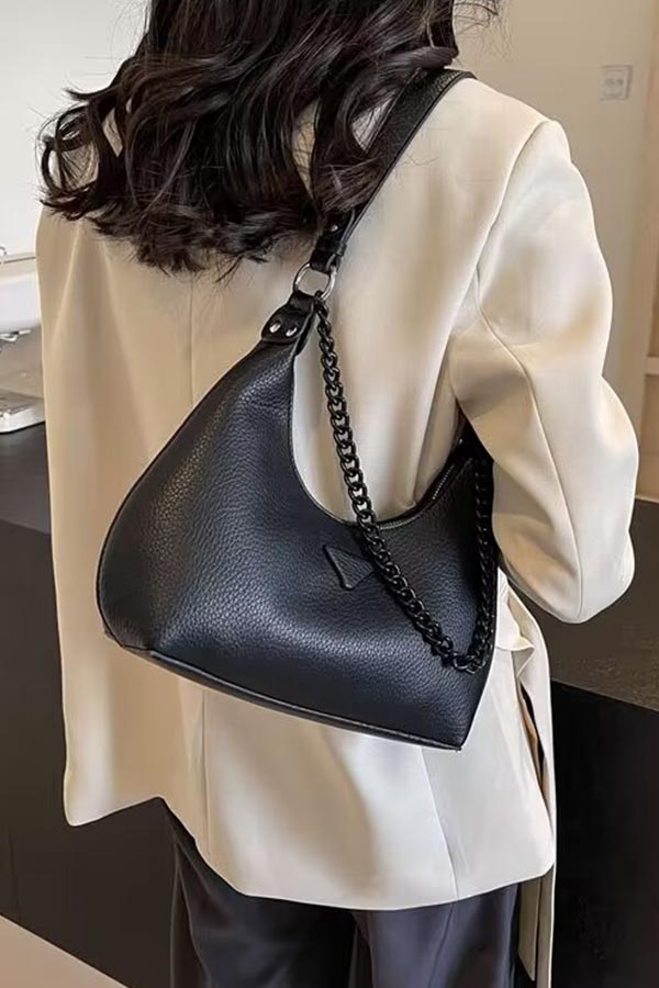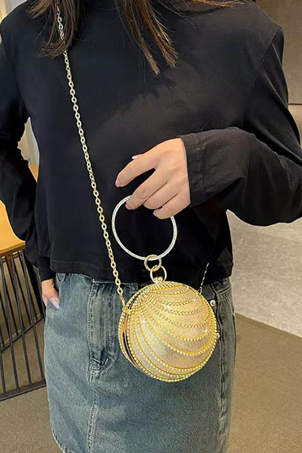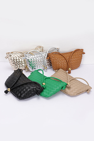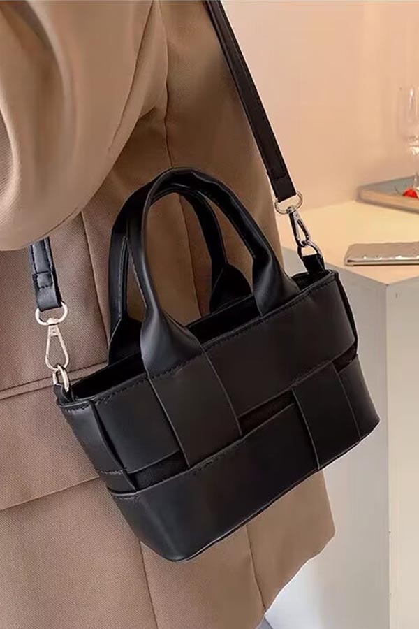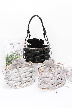 Faux Leather Multi Ribbon Bucket Chain Crossbody Bag