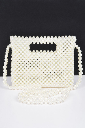 Hand Made Faux Pearl Bead Flap Crossbody Bag