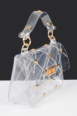 Faux Leather Multi Stones ALL Around Square Handle Bag