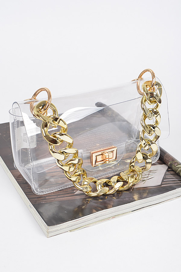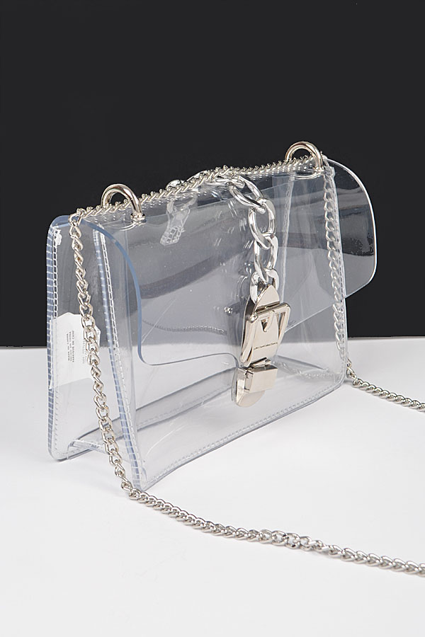 Clear Cross Body Bag W/Oversized Chain.