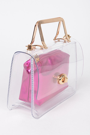 Transparent Metal Handle Bag w/ Pouch