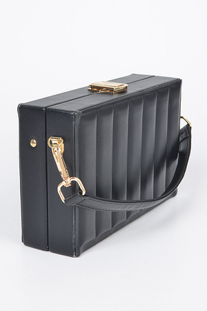 Faux Leather Stripe Embossed Clutch Bag