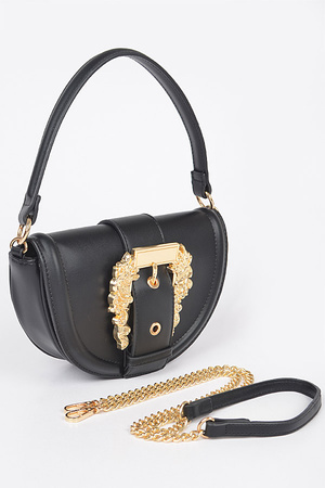 Faux Leather Shoulder Bag W/Big Metal Buckle