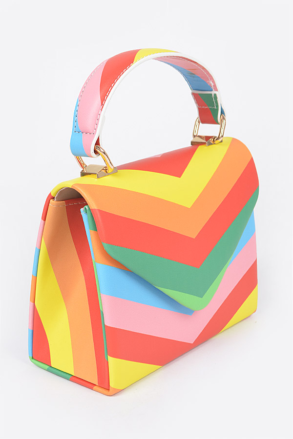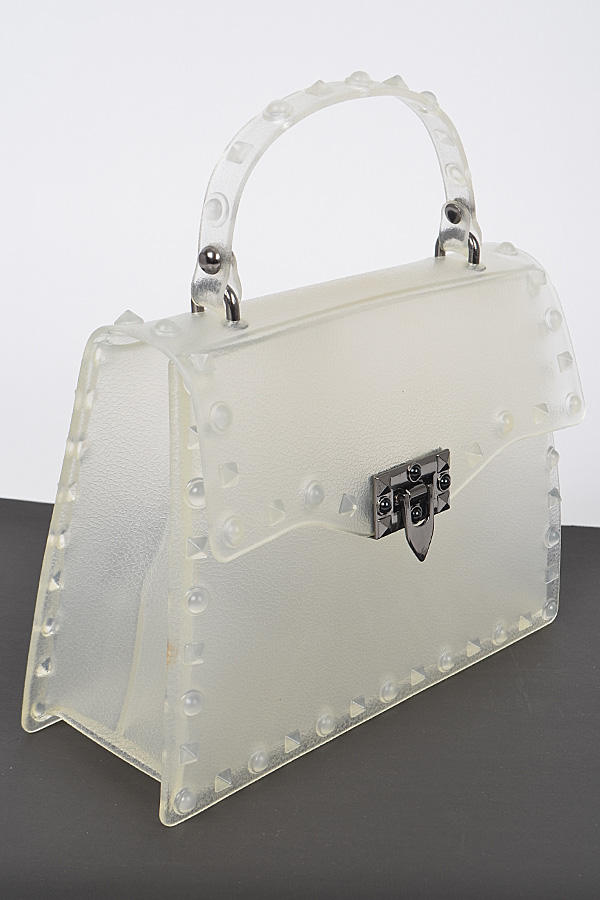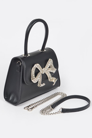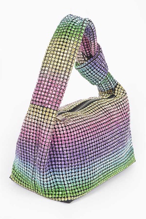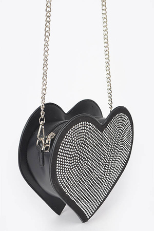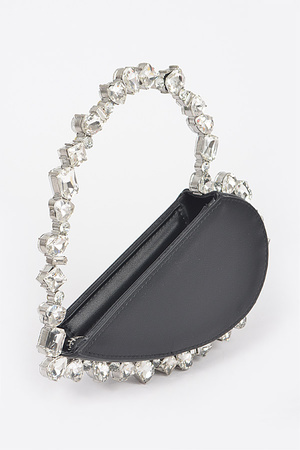 * Faux Leathe Multi Stones All Around Handle Heart Bag