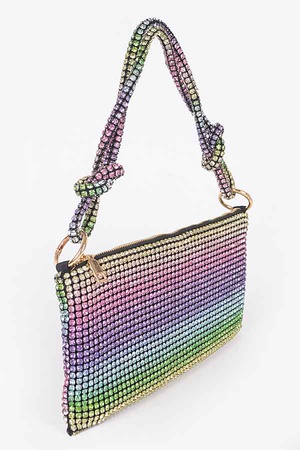 Croc Embossed Metallic Rhinestone Fringe Bag