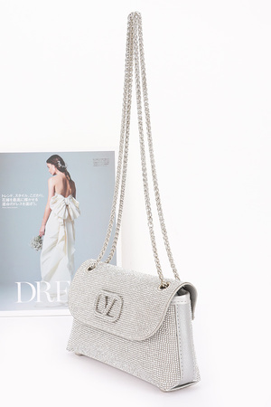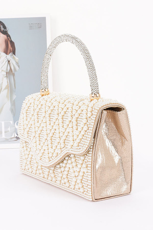 Enamel Rhinestone Ribbon Top Handle Clutch