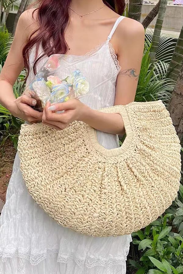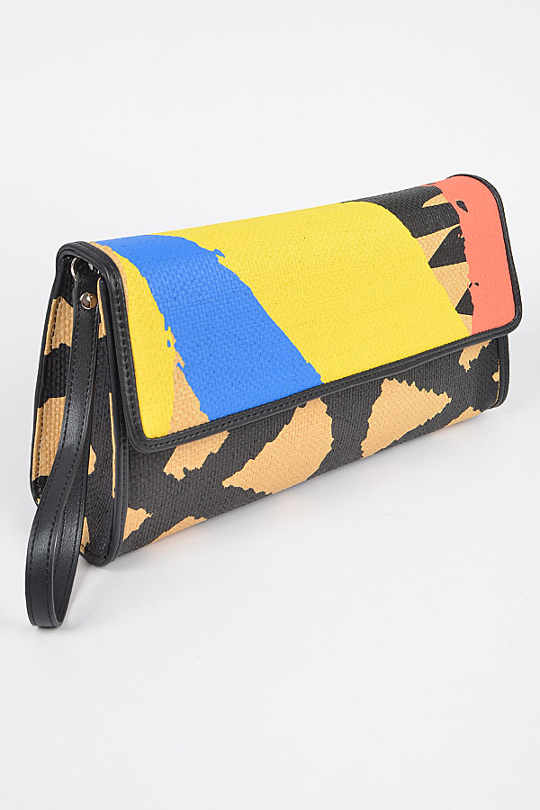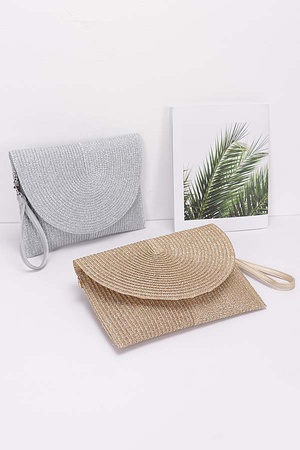 Metallic Faux Straw Multi Flowers Envelope Clutch