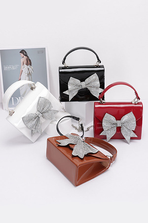 Enamel Rhinestone Ribbon Top Handle Clutch