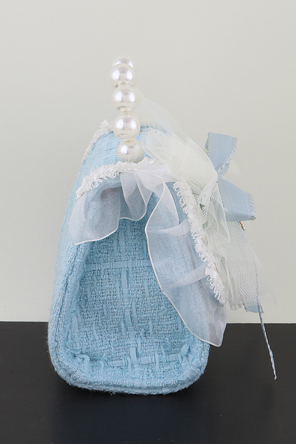 • * The Jeweled Five Ribbon Chain Clutch from H&D Accessories is an elegant and stylish accessory. It features five ribbons adorned with jewels, adding a touch of sophistication to the design. The clutch is complemented by a chain strap, making it convenient for carrying. This clutch is perfect for formal events, parties, or evenings out, providing a chic and convenient way to carry your essentials.