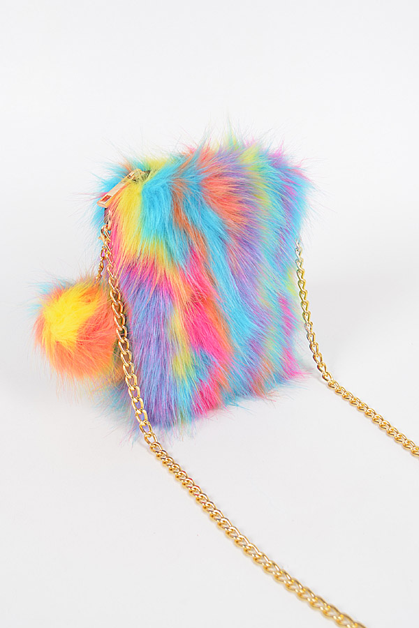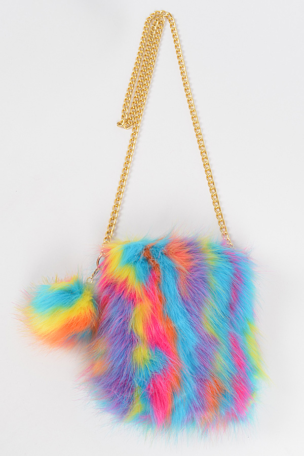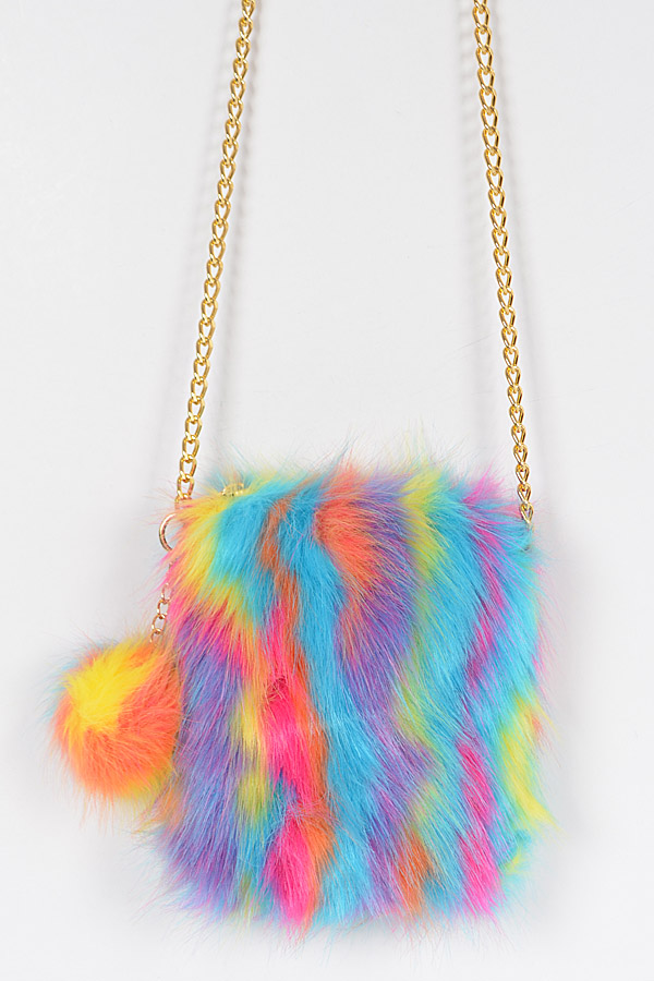 - * Multi Color Faux Fur Cellphone Bag