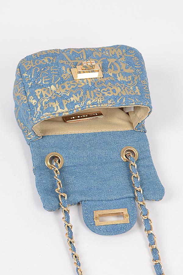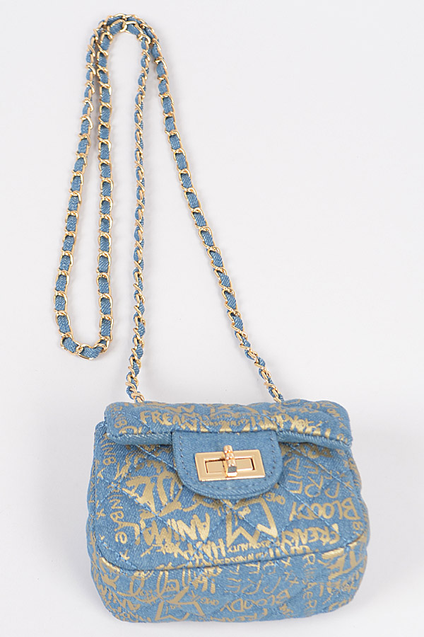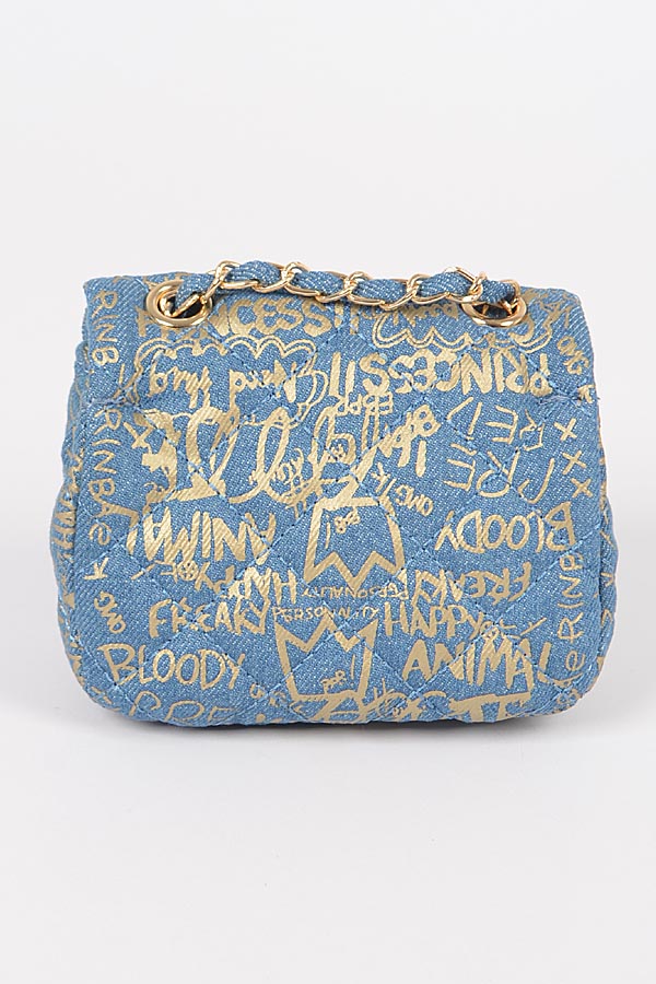 - * Metallic Graffiti Quilted Denim Mini Bag