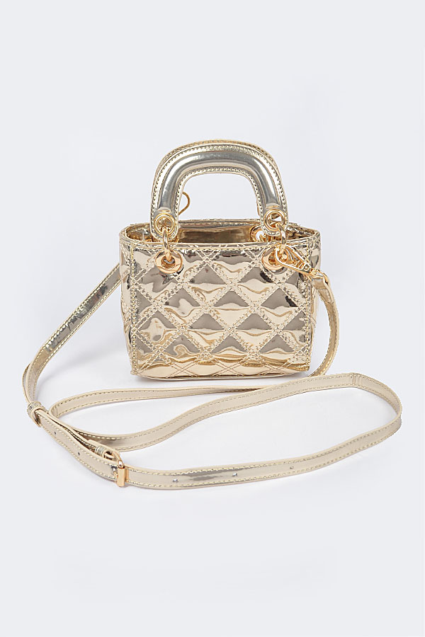 - * Quilted Mirror Mini Tote W/Faux Pearl