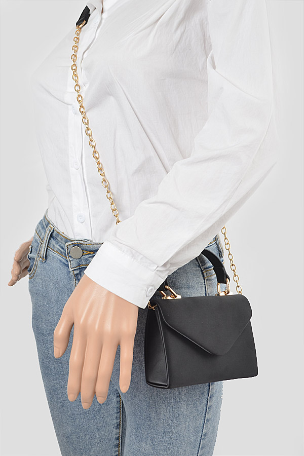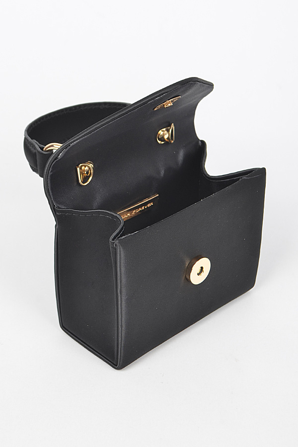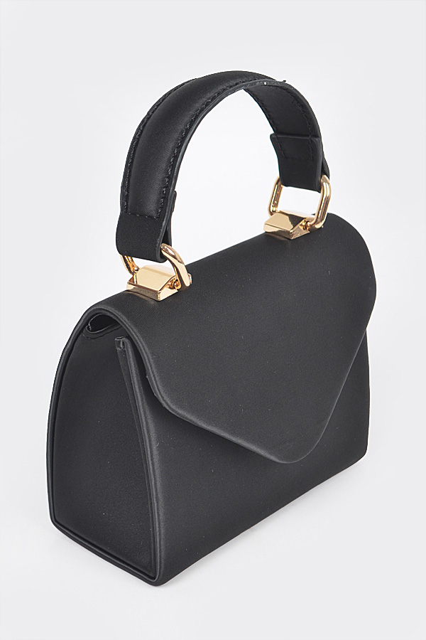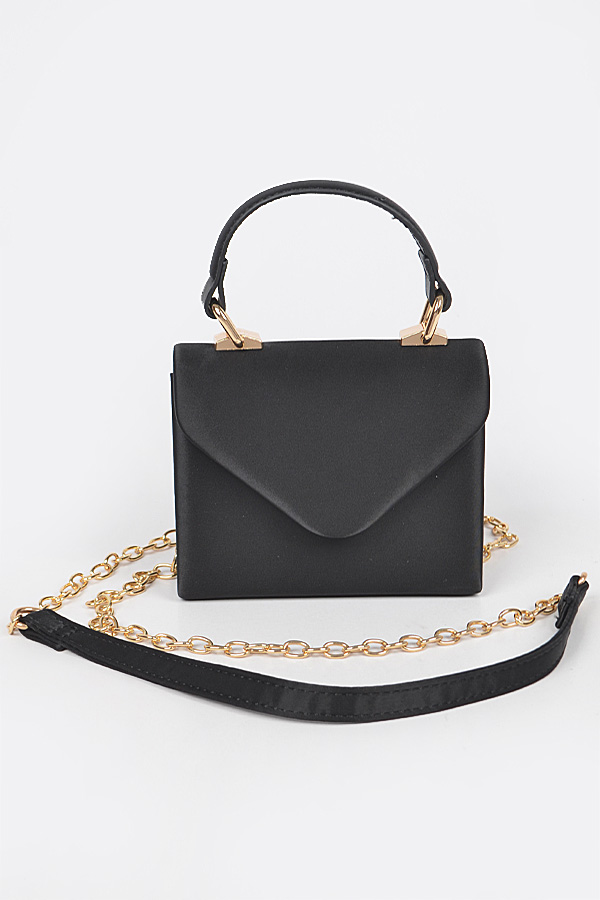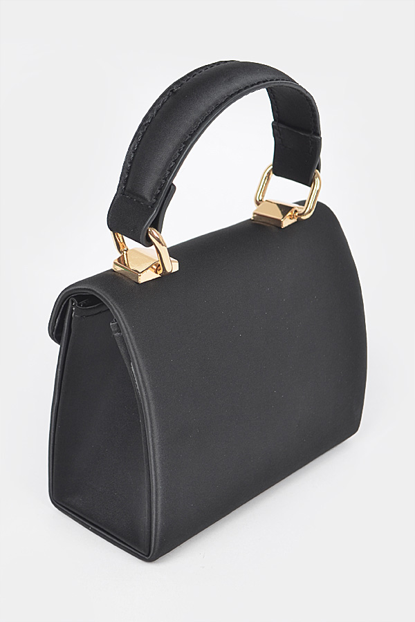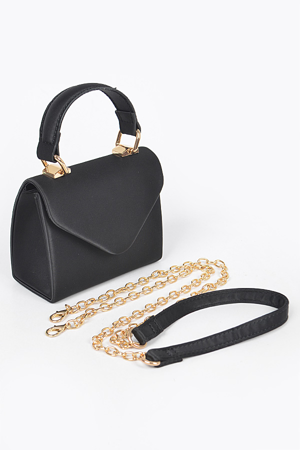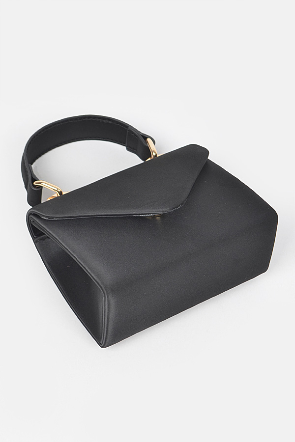- * Satin Top Handle Strap Flap Mini Bag