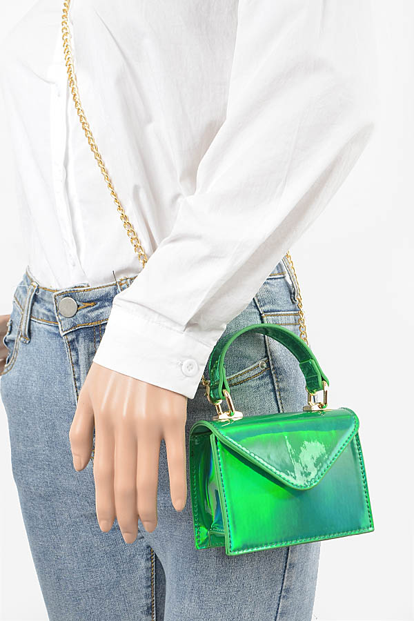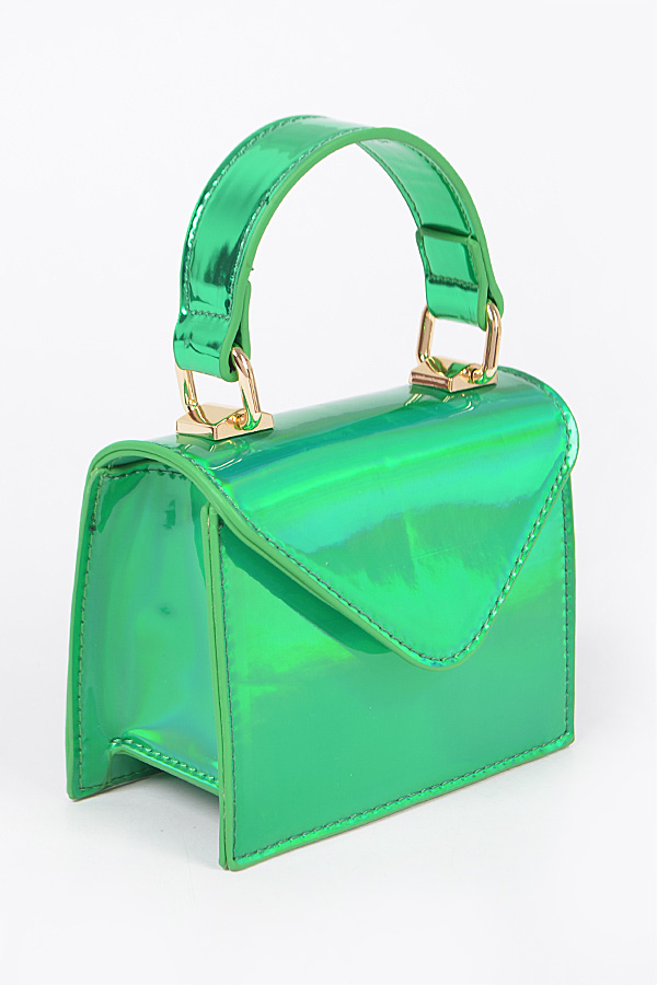 - * Mirror Metallic Top Handle Mini Bag