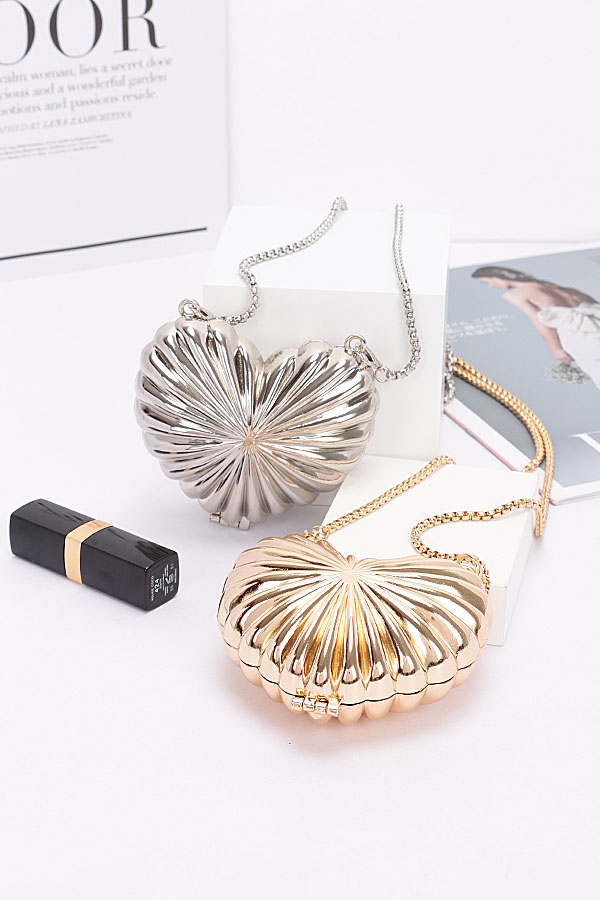 - * Introducing the "Golden Heartbeat Clutch" – a stunning heart-shaped purse that perfectly combines elegance and charm. With its chic chain, this mini handbag from H&D Accessories is not just a fashion statement; it's a symbol of love and style that will elevate any outfit.