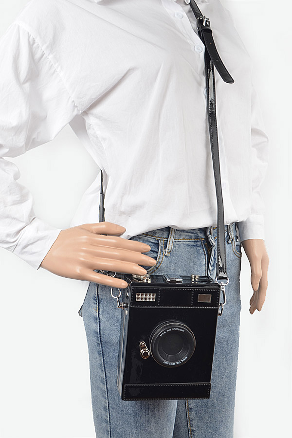 - * Camera Style Shoulder Strap Leather Clutch