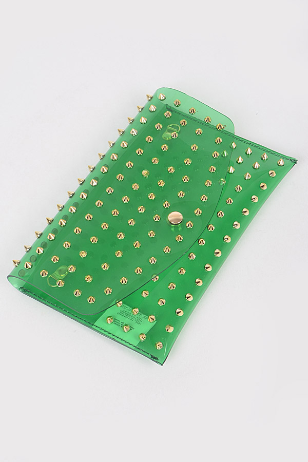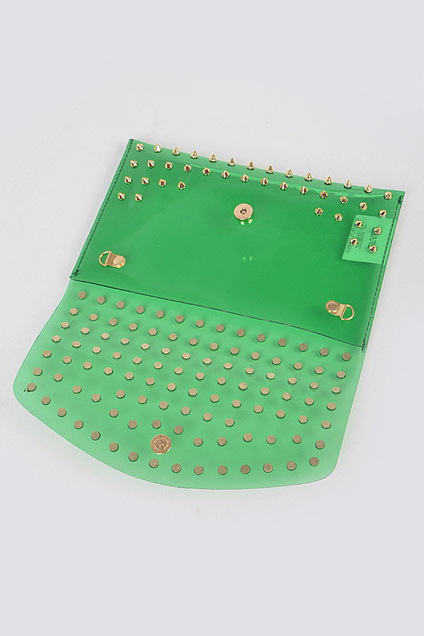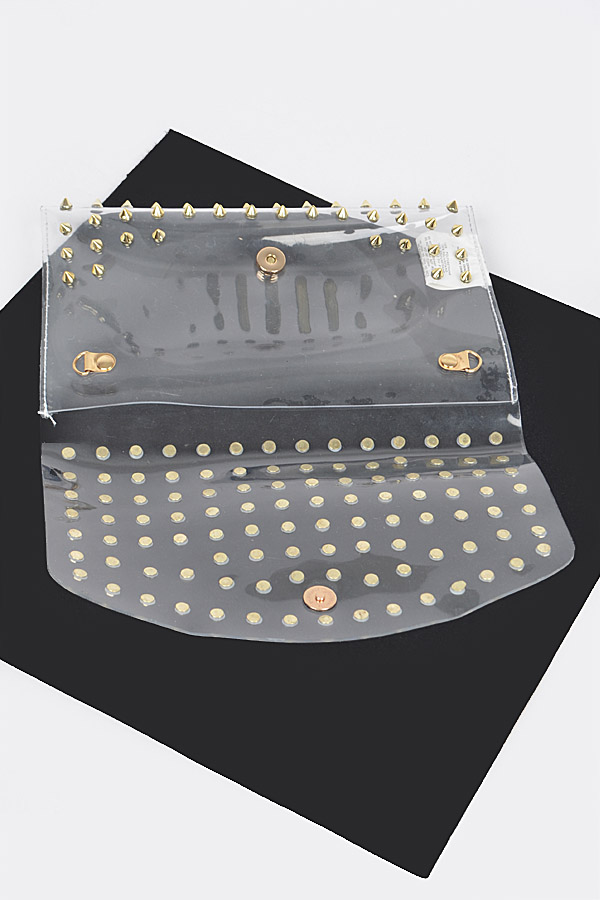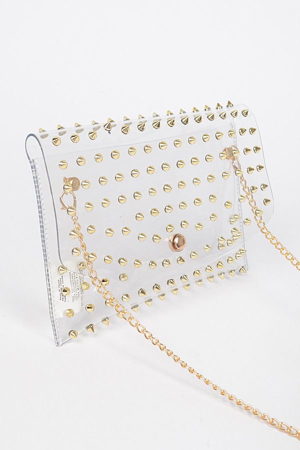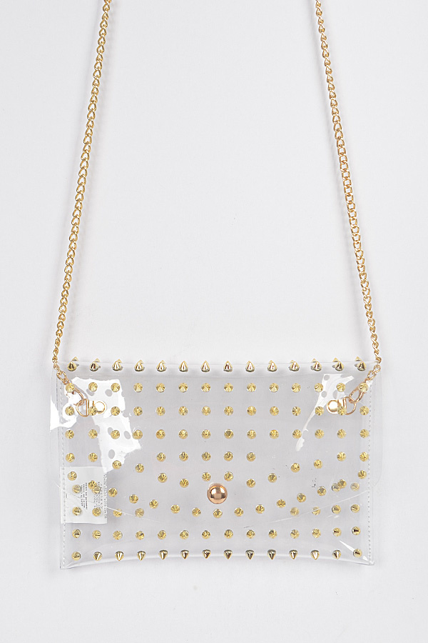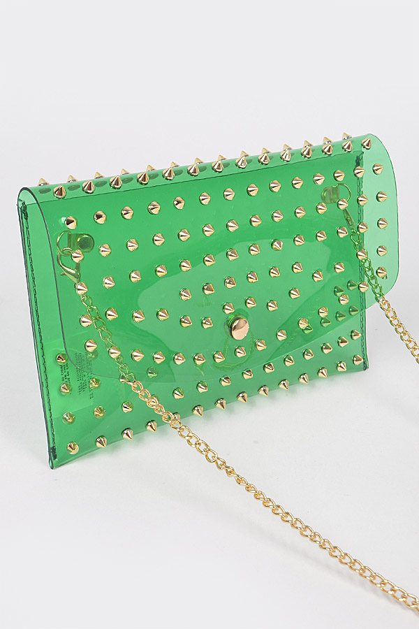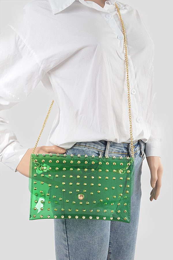 - * Multi Stoned Cross Body Chain Strap Visible Clutch