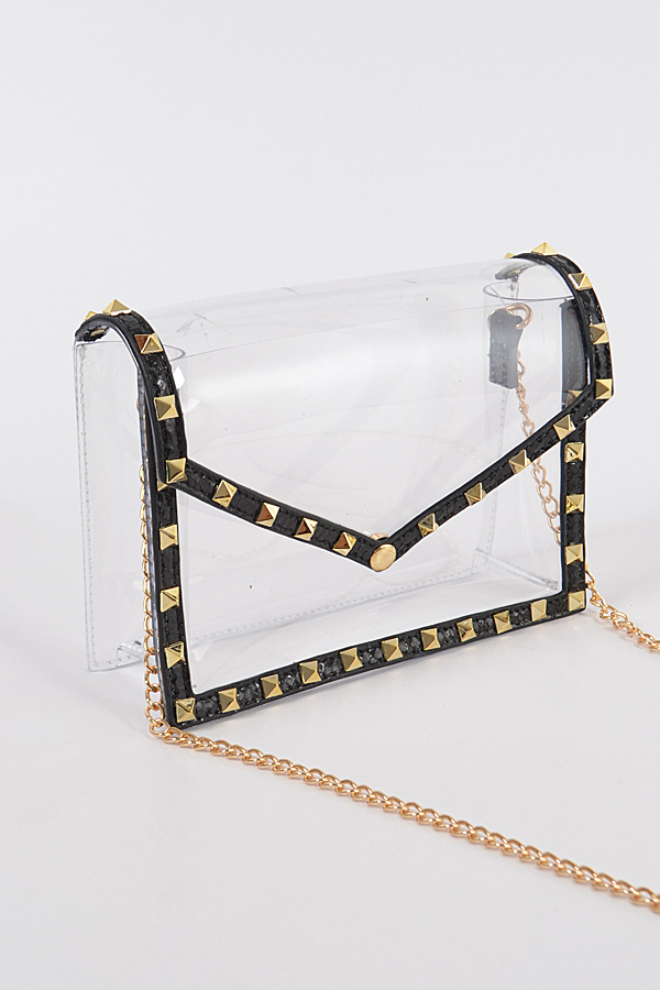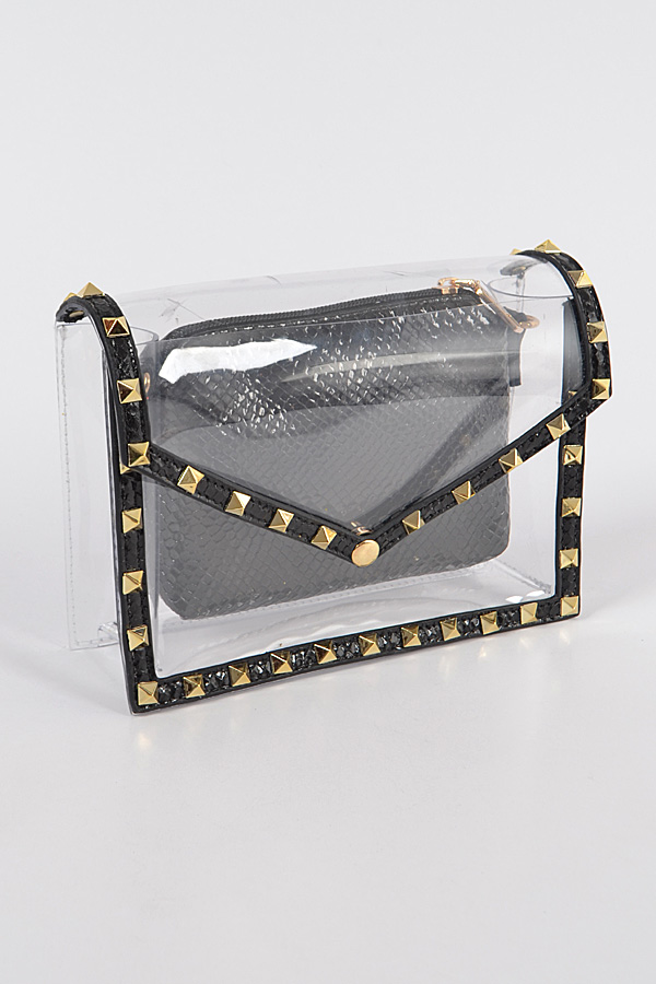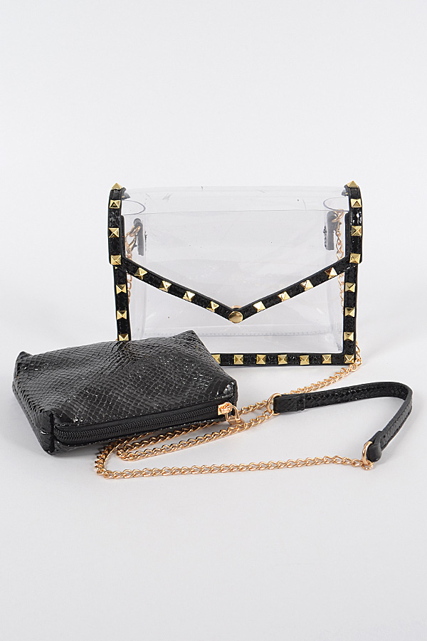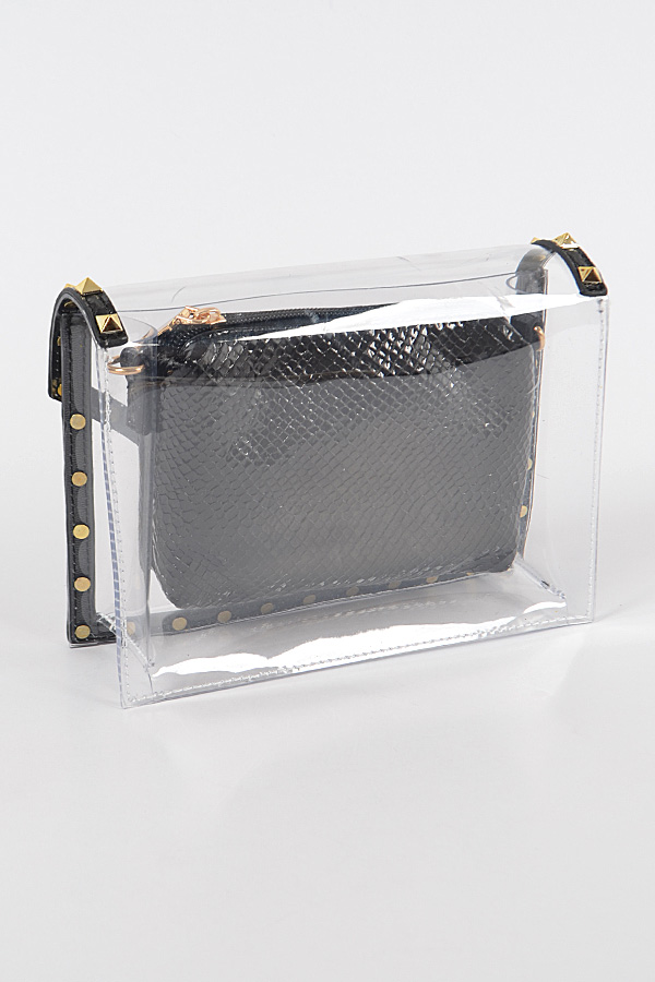 - * Studded Clear Clutch w/ Faux Snakeskin mini pouch