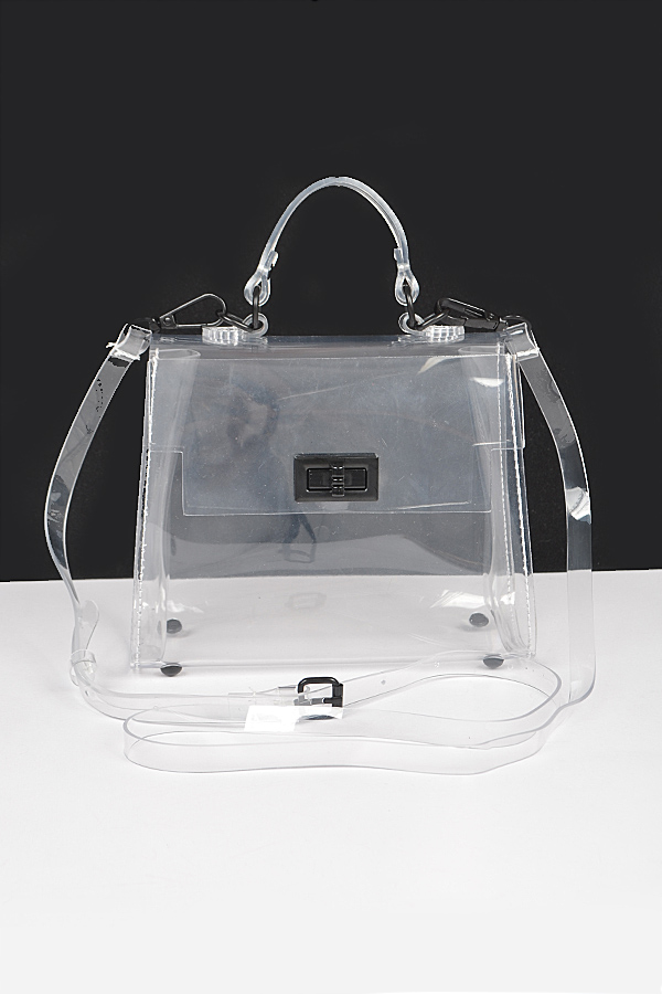 - * Introducing the "GlimmerClutch" – a stunning transparent bag that combines elegance and functionality. With its chic handle, this clutch is perfect for any occasion, allowing you to showcase your style while keeping your essentials secure. Elevate your accessory game with the GlimmerClutch and make a statement wherever you go!