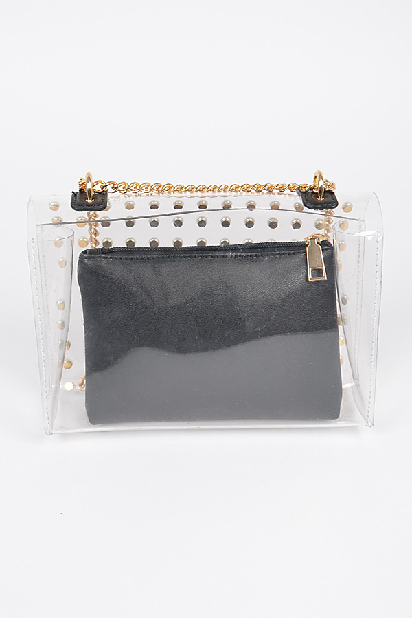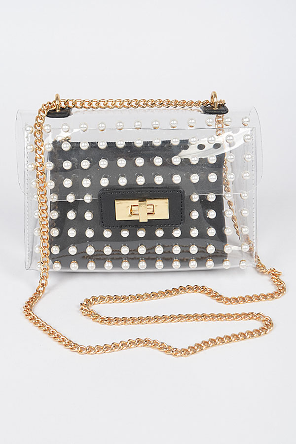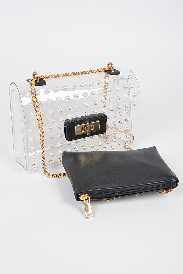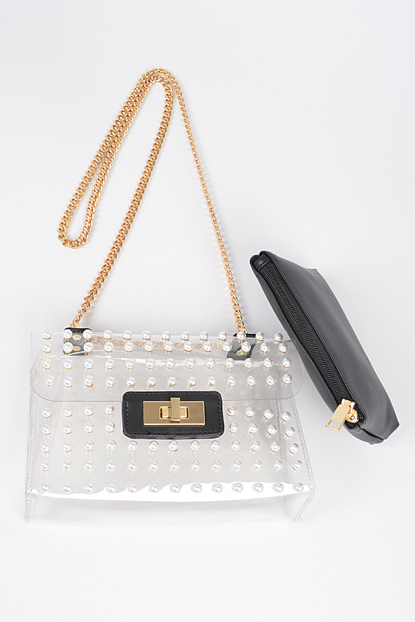 - * Faux Pearl Studded Transparent Bag W/Mini Purse