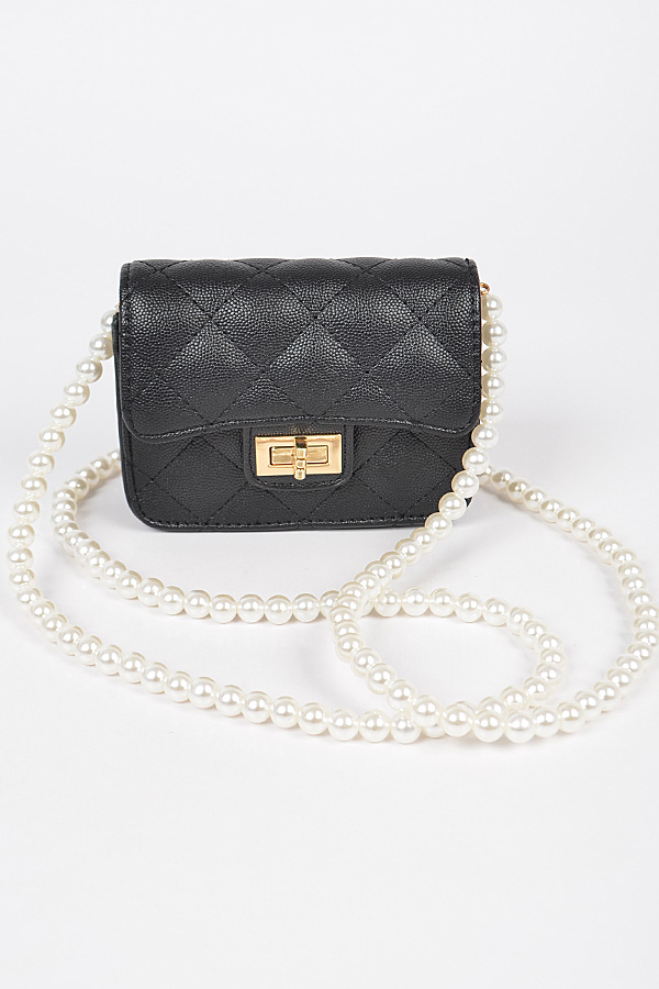 - * Faux Pearl Strap Quilted Clutch