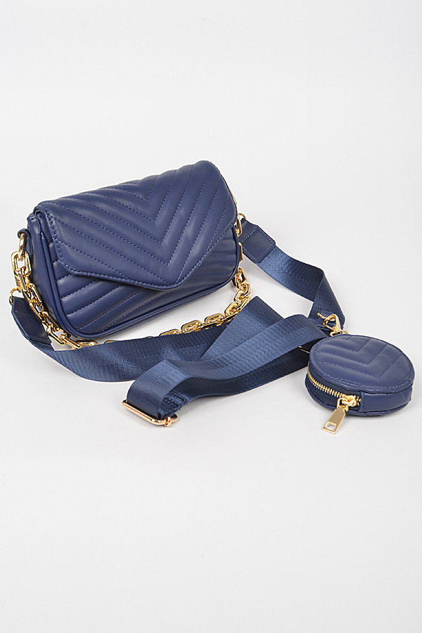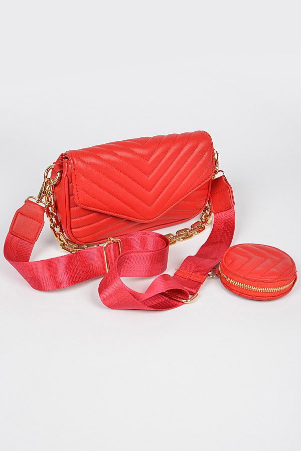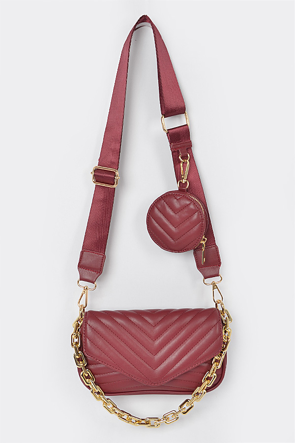 - * Quilted Multi Faux Leather Chain Cross Body Bag