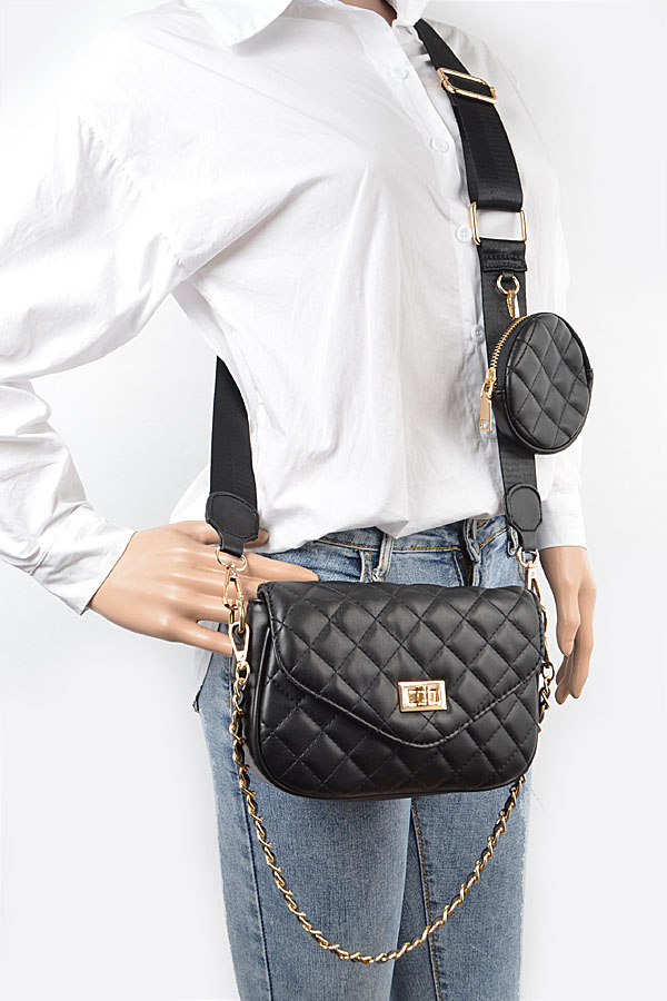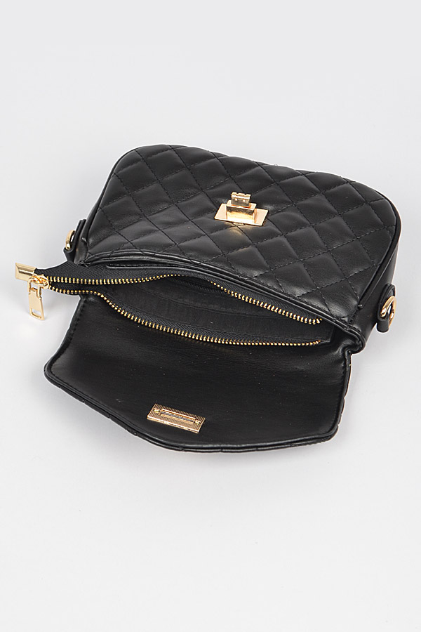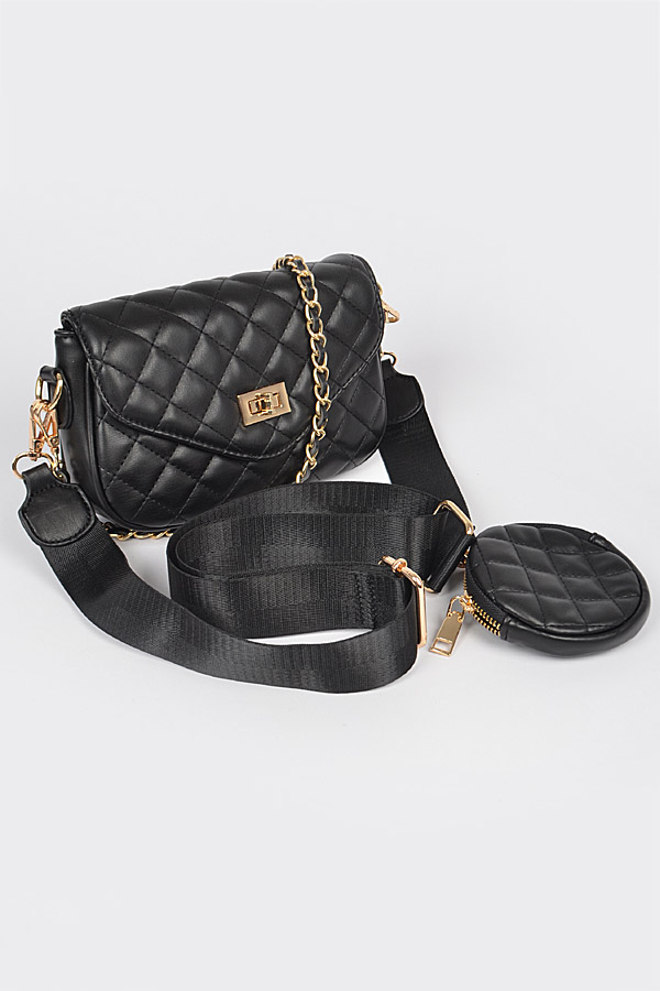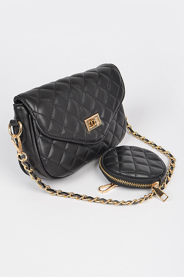 - * Quilted Faux Leather Chain Bag W/Mini Purse