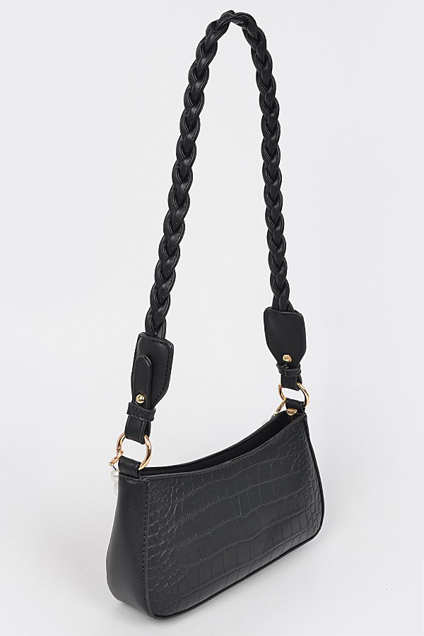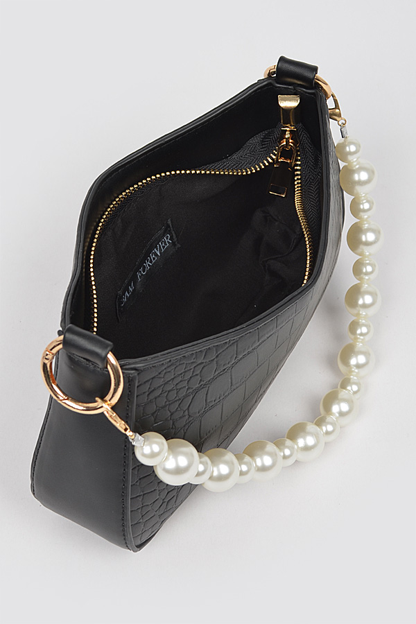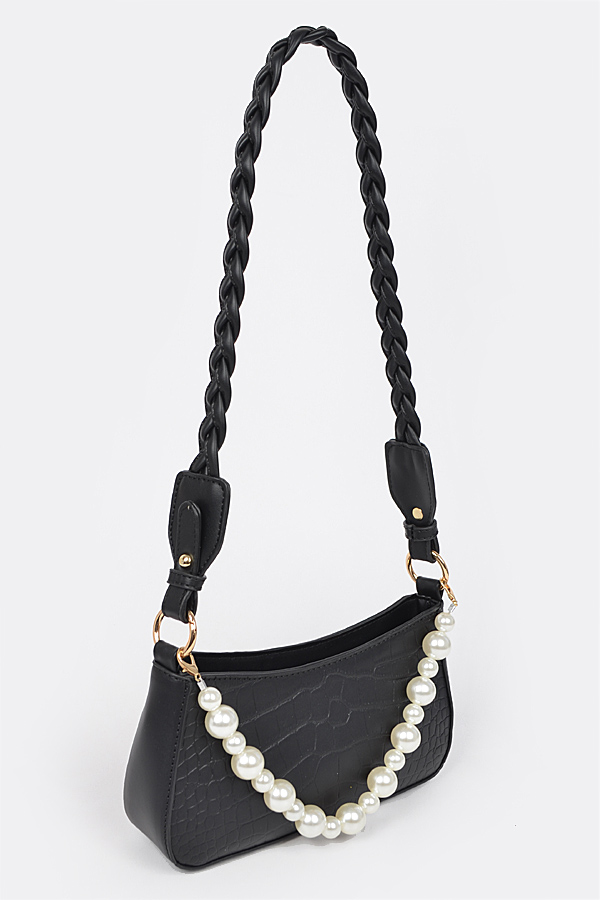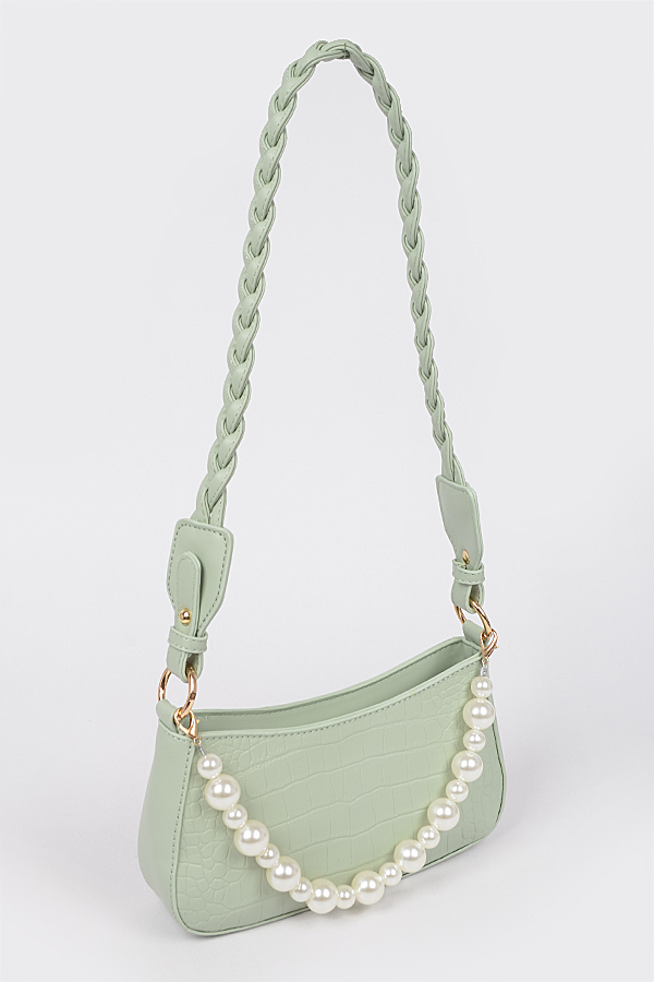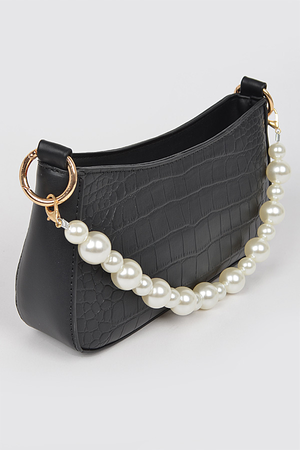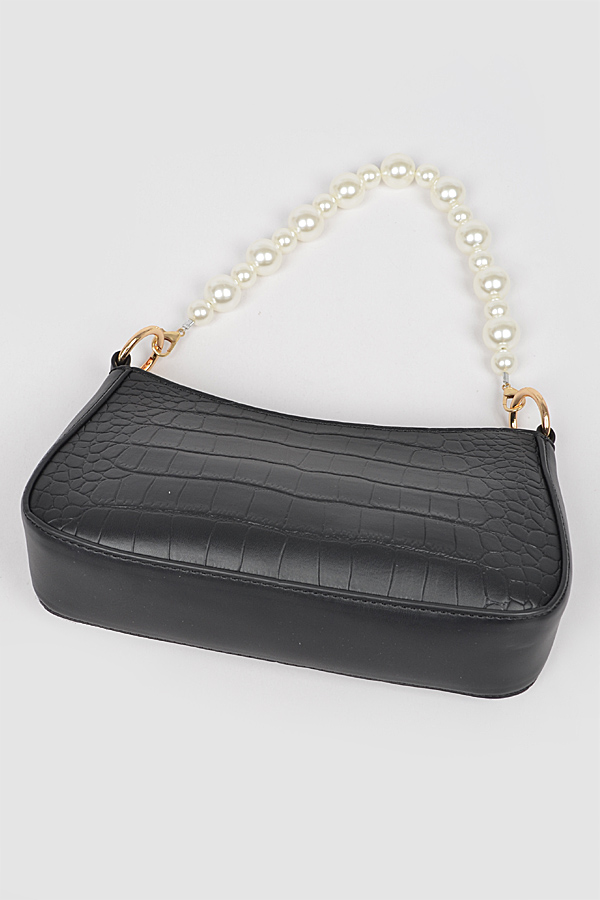 - * Faux Croc Simple Shoulder Bag W/Pearl