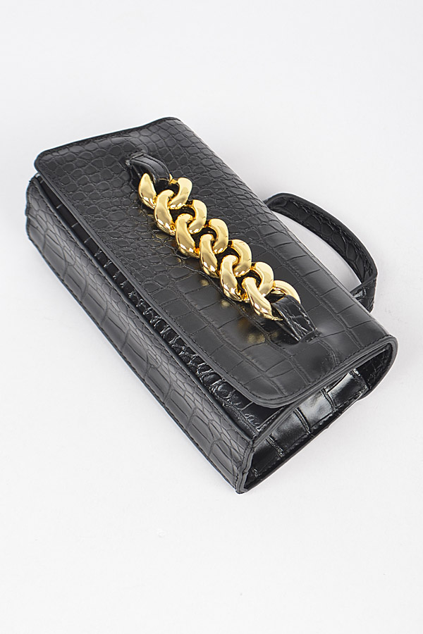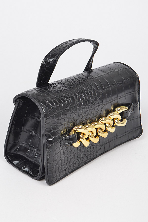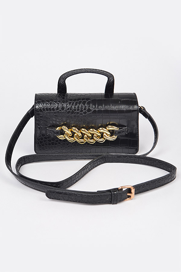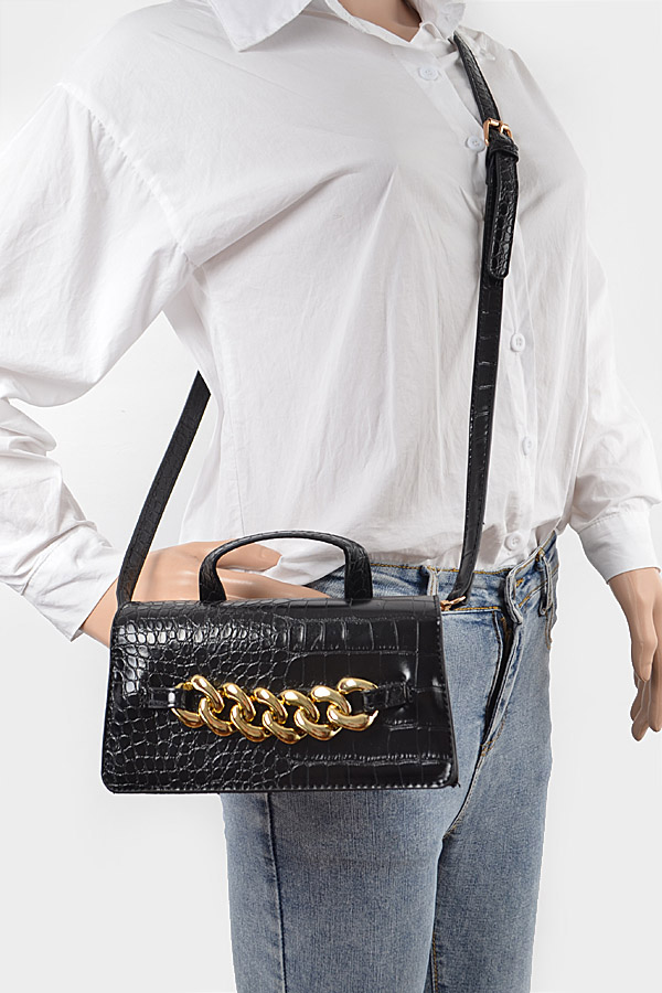 • * Faux Leather Chain Crossbody Bag