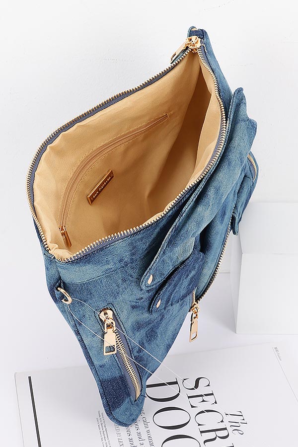 - * Introducing the "Denim Jacket Crossbody Clutch" by H&D Accessories, where rugged style meets chic functionality. This unique crossbody clutch captures the essence of a classic denim motorcycle jacket, making it the perfect accessory for those who crave fashion. Make a bold statement and showcase your unique style with this must-have accessory that complements any look.