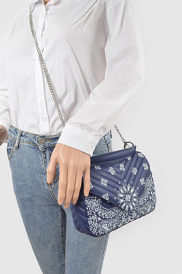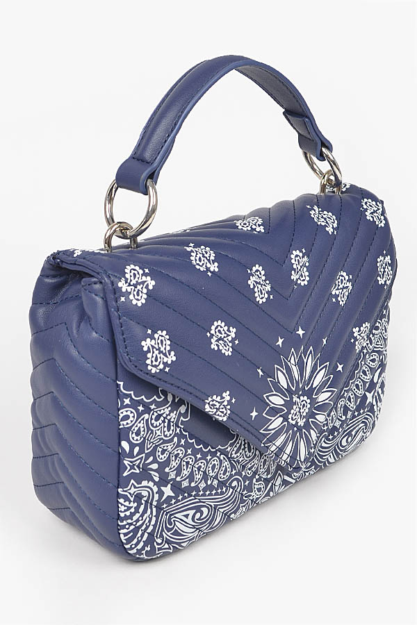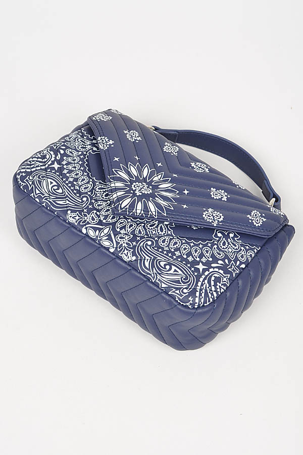 - * Quilted Bandana Print Faux Leather Crossbody Bag