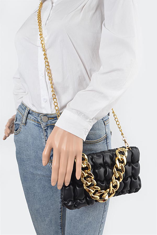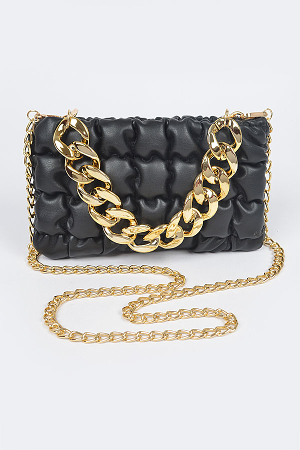 - * Quilted Faux Leather Chain Bag