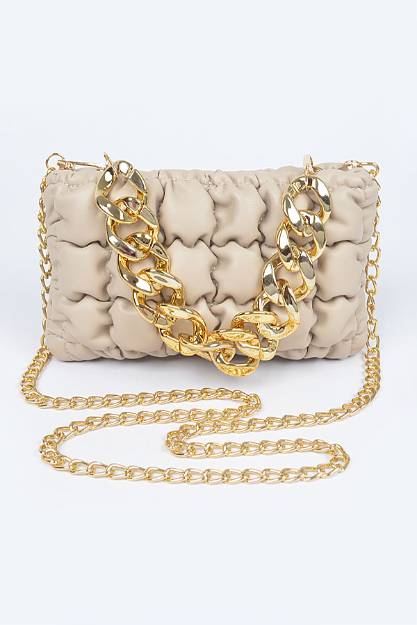 - * Quilted Faux Leather Chain Bag