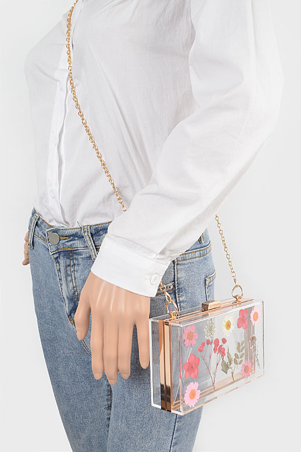 - * Flower Transparent Hard Case Clutch