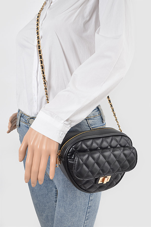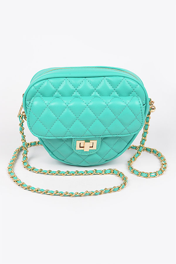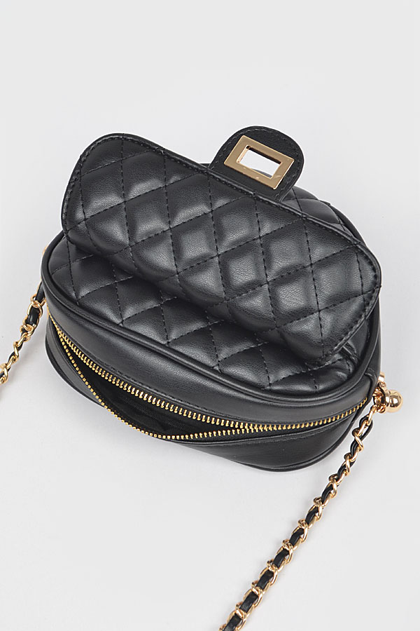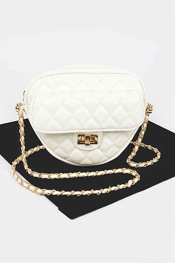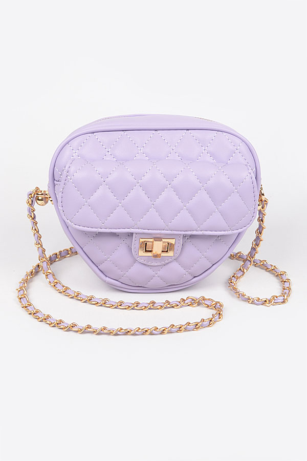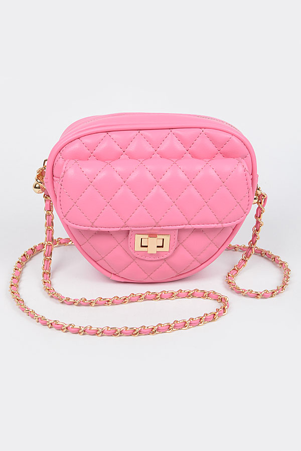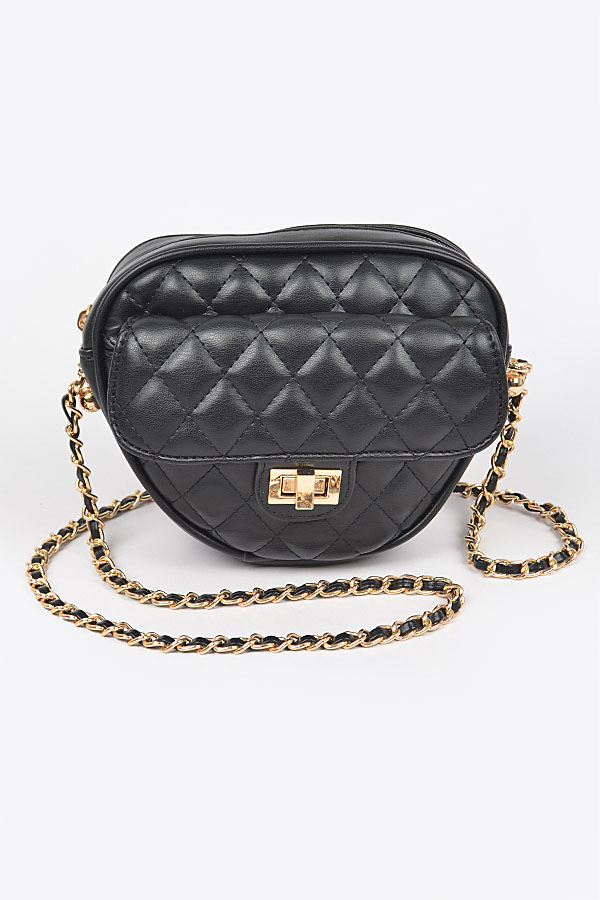 - * Quilted Faux Leather Heart Shape Crossbody Bag