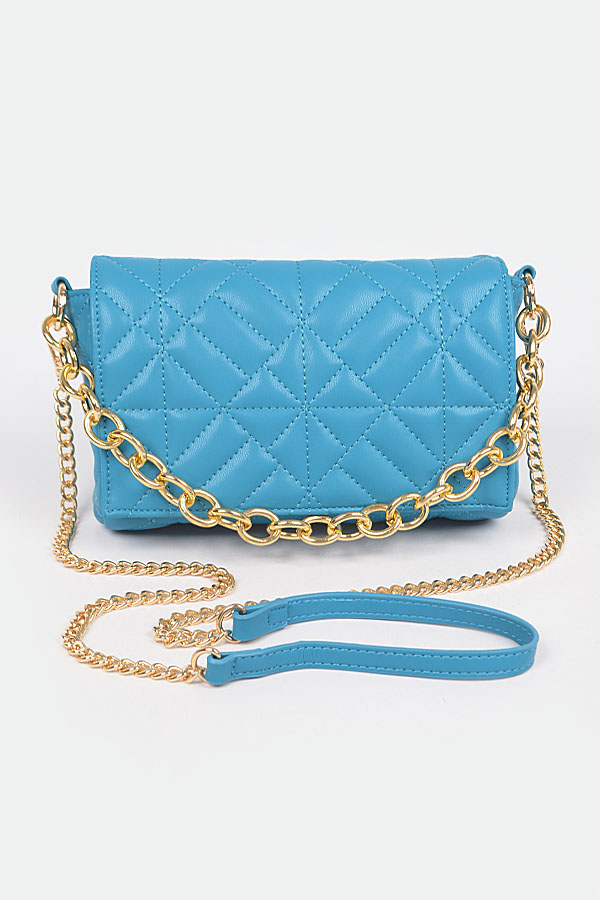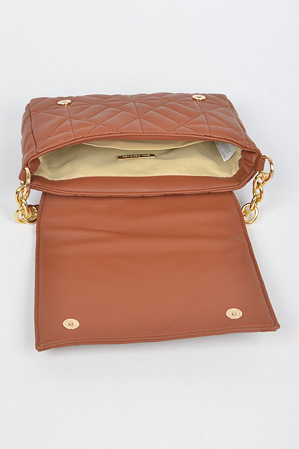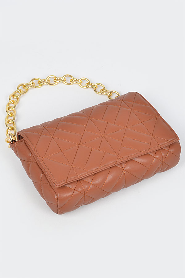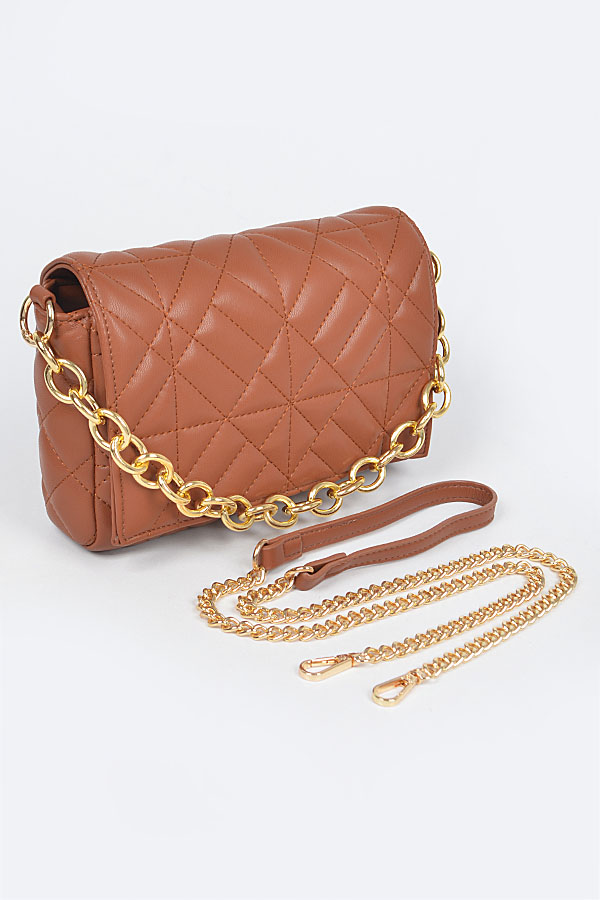 - * Quilted Faux Leather Chain Flap Bag