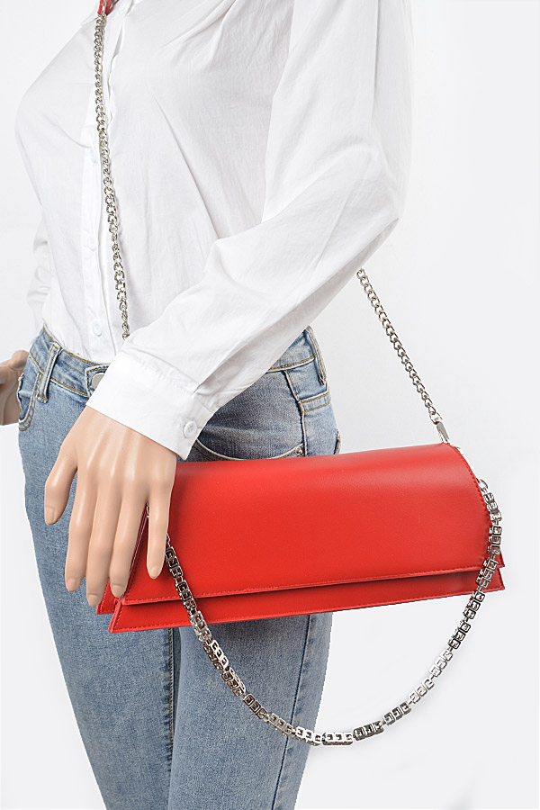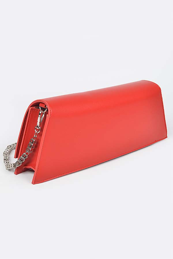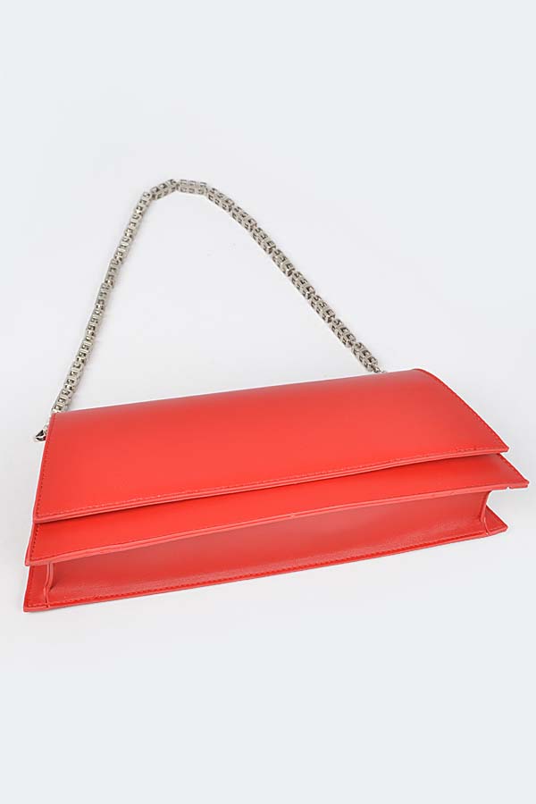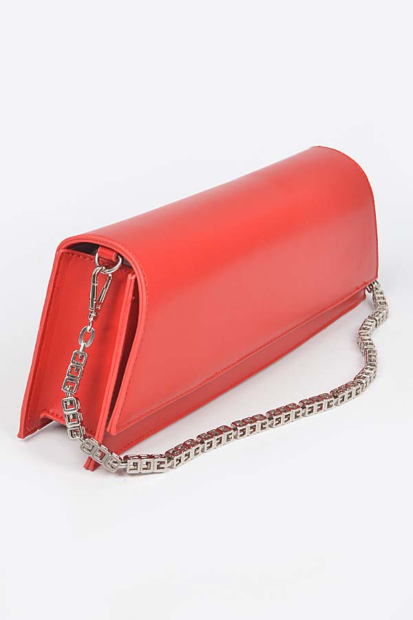 - * Faux Leather Stone Chain Handle Shoulder Bag