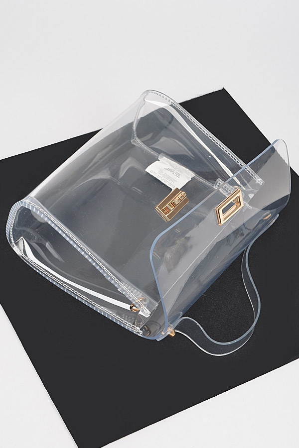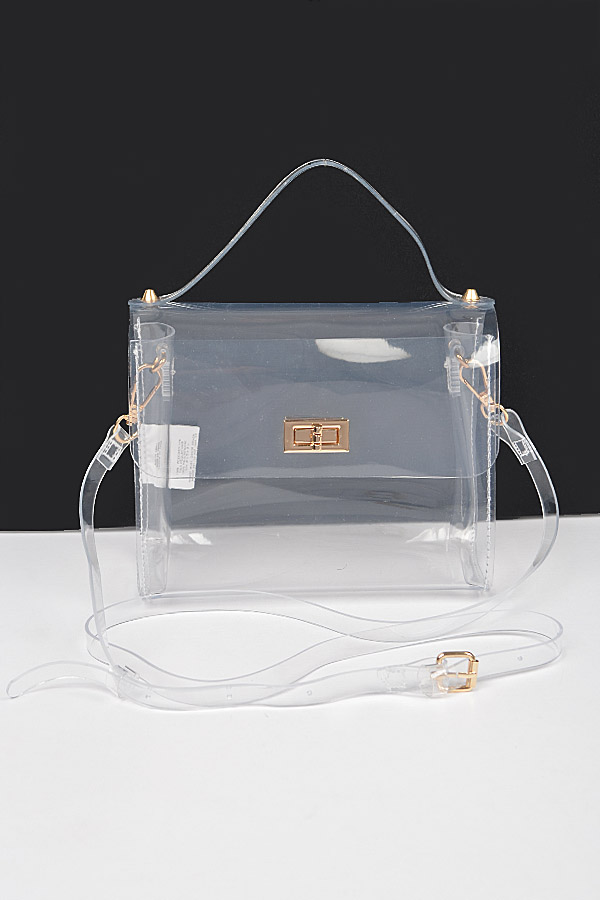 • * Introducing the "Golden Glimpse Crossbody" – a stunning transparent bag that combines elegance with functionality. The hardware adds a touch of luxury, making it the perfect accessory for any occasion. Elevate your style and showcase your essentials with this chic and versatile bag.