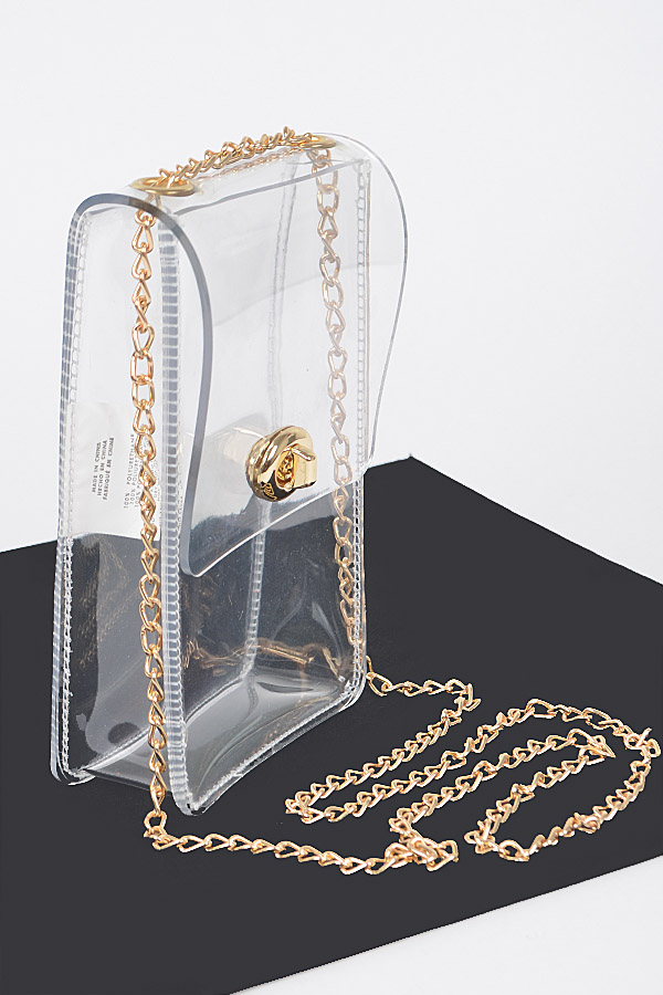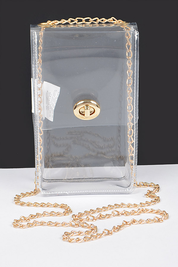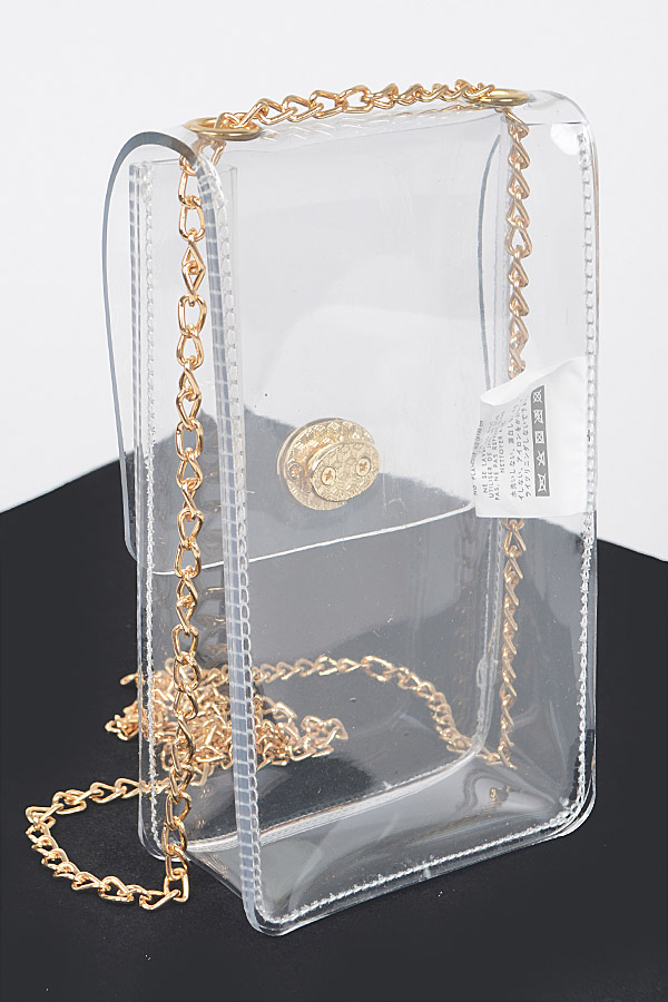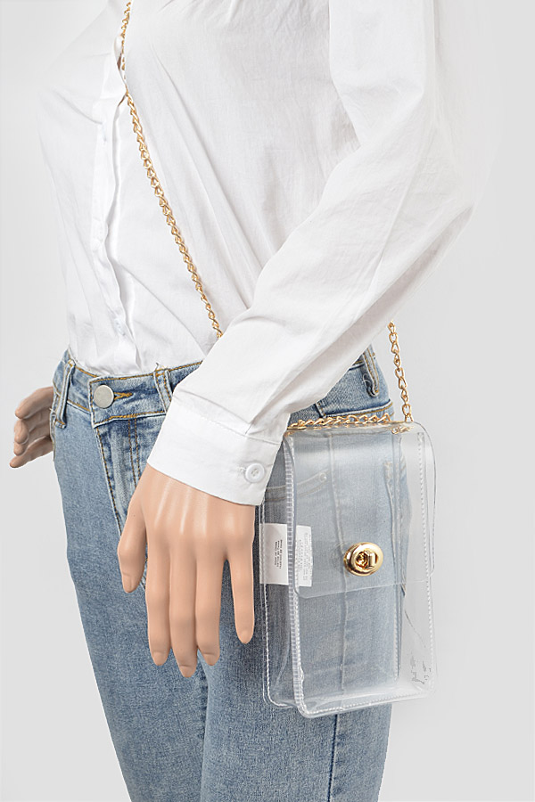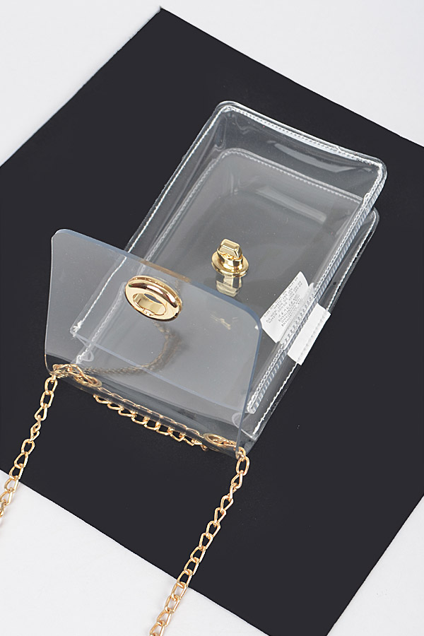• * Transparent Crossbody Bag from H&D Accessories features a clear construction with a secure turn - lock closure. It comes with a metal chain strap for versatile carrying options, allowing it to be worn as a crossbody or shoulder bag. The compact yet functional design provides enough space for essentials like a phone, cards, and small cosmetics. Ideal for concerts, sports events, or casual outings where a clear bag is required, this crossbody bag combines practicality with a sleek, modern look.