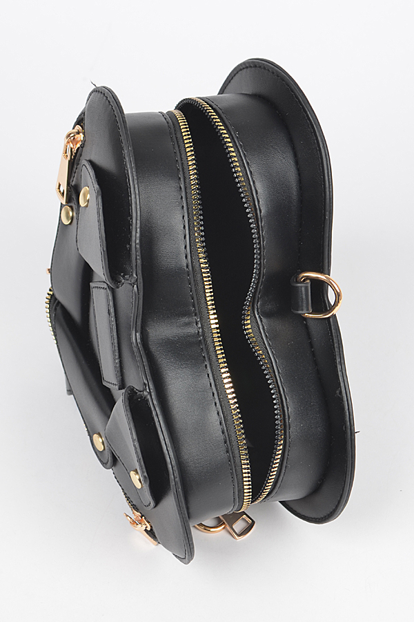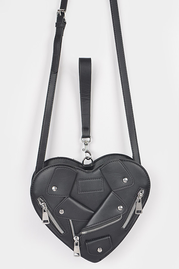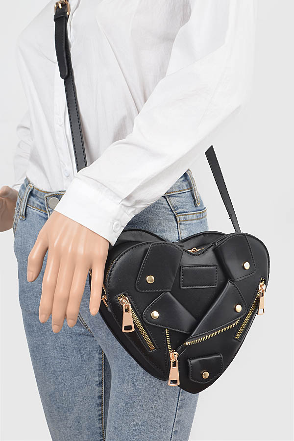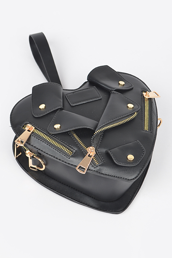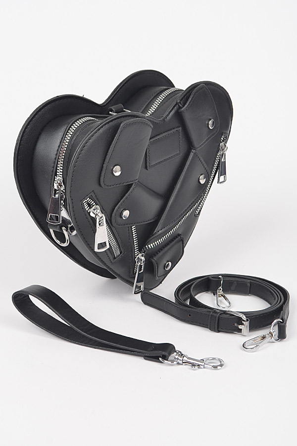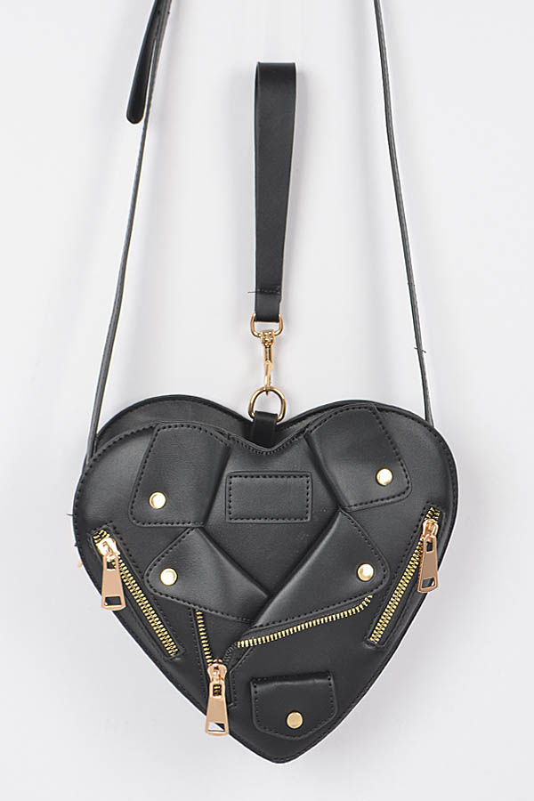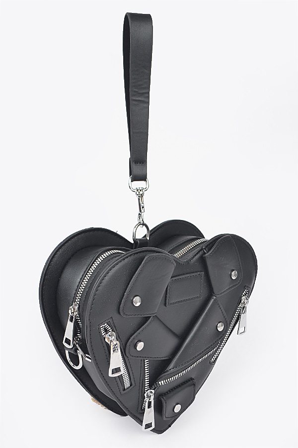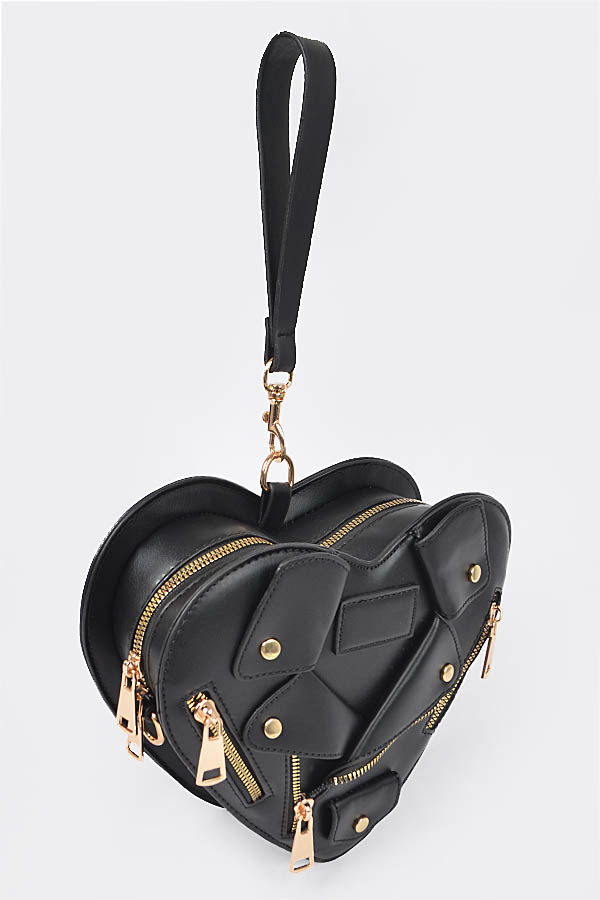 - * Introducing the "Midnight Luxe Clutch" – a stunning black heart-shaped purse that combines elegance with a touch of edginess. Featuring luxurious gold zippers, this faux leather accessory is perfect for those who want to make a bold fashion statement. Elevate your style with the Midnight Luxe Clutch, where sophistication meets individuality.