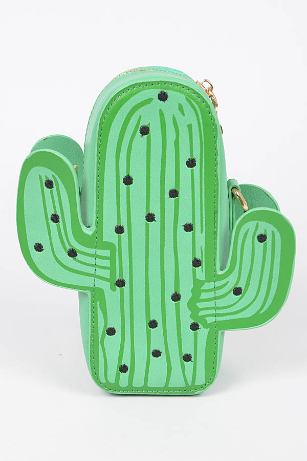 - * This Faux Leather Cactus Crossbody Bag from H&D Accessories is a whimsical and eye - catching accessory. Crafted to resemble a cactus, it features a vibrant green body with black spines and is adorned with bright pink flowers, adding a playful touch. The gold - toned chain strap not only provides a stylish contrast but also allows for convenient cross - body wear. Ideal for casual outings, beach trips, or adding a fun element to everyday outfits, this bag combines fashion and functionality.