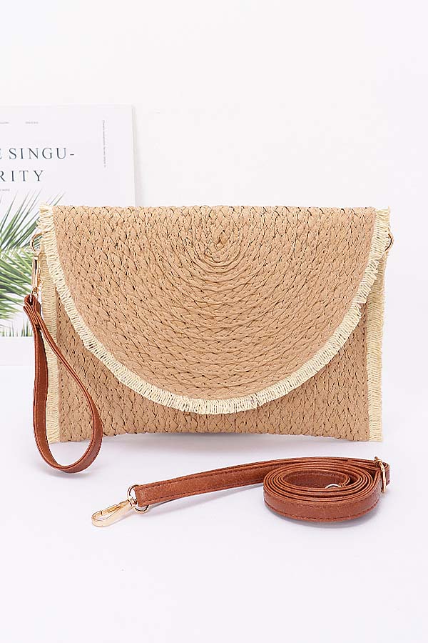• * Faux Straw Envelope Clutch W/Wrist Band
