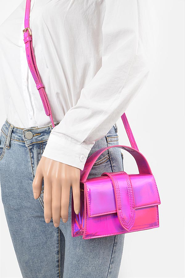 - * Metallic Top Handle Crossbody Bag