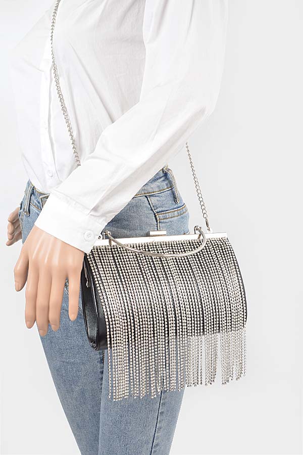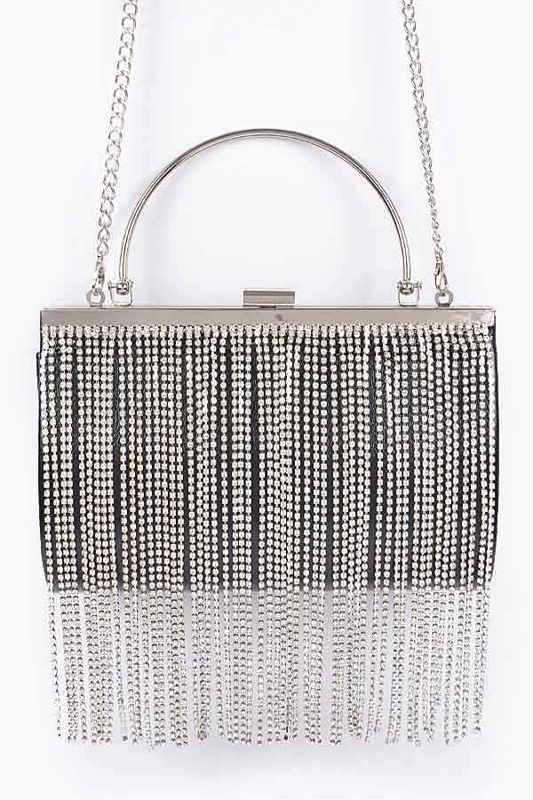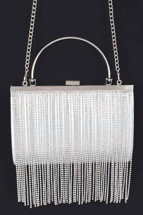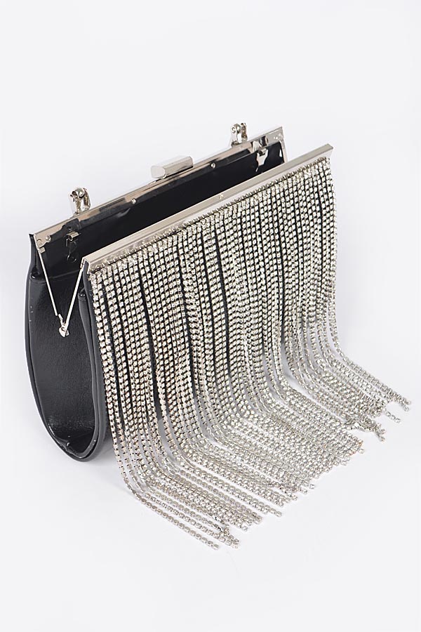 - * Rhinestone Fringe Metallic Party Clutch