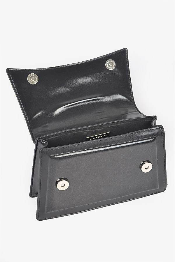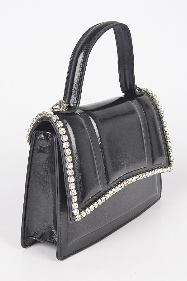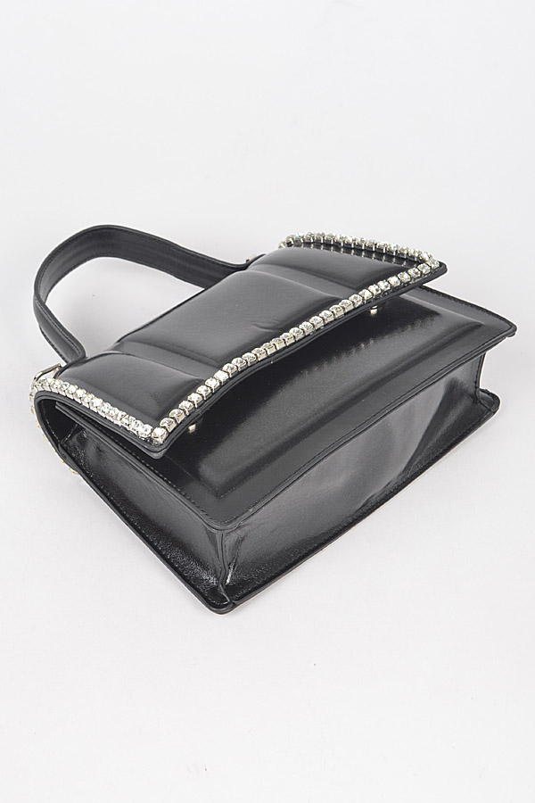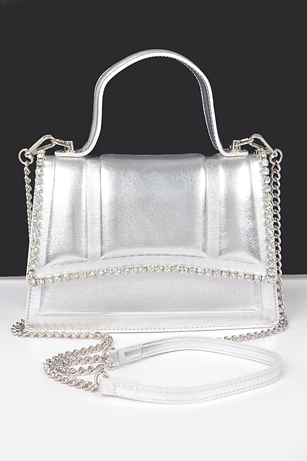 - * Faux Metallic Leather Top Handle Bag/W Stones