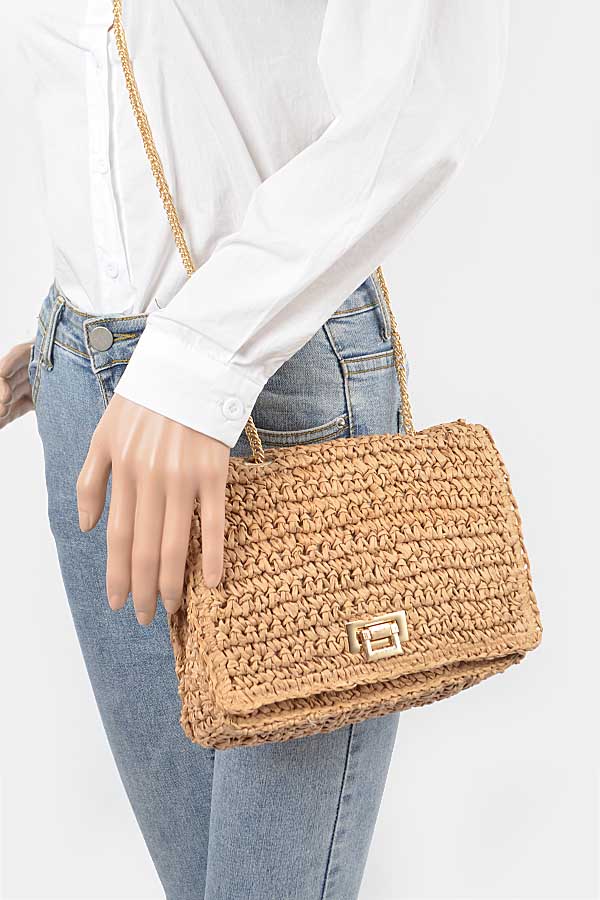 - * Faux Straw Cotton Bucket Bag